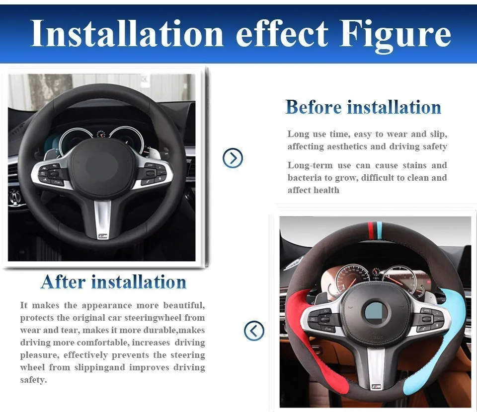 Особые характеристикиHand-stitch Black Suede Leather Car Steering Wheel Cover for BMW M Spo