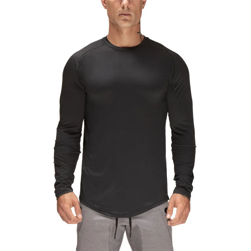 Сетчатая Однотонная футболка с длинным рукавом для мужчин, новая бр...