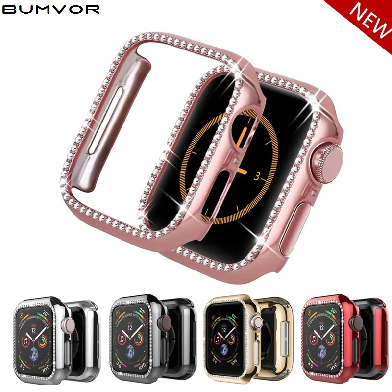 Алмазный чехол для Apple Watch Series 5 4 3 2 iWatch, защитный чехол для экрана из поликарбоната, корпус для apple Watch 38 мм42 мм 40 мм44 м