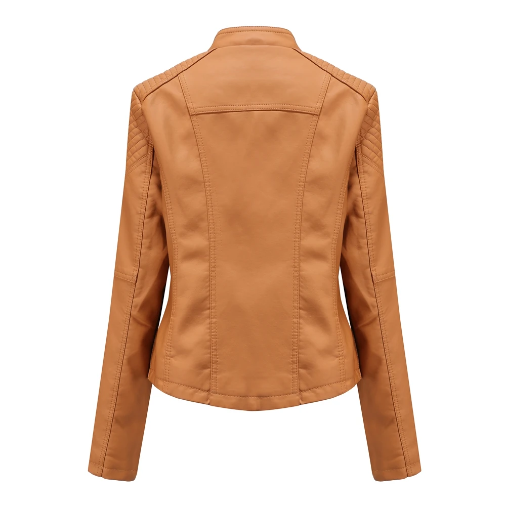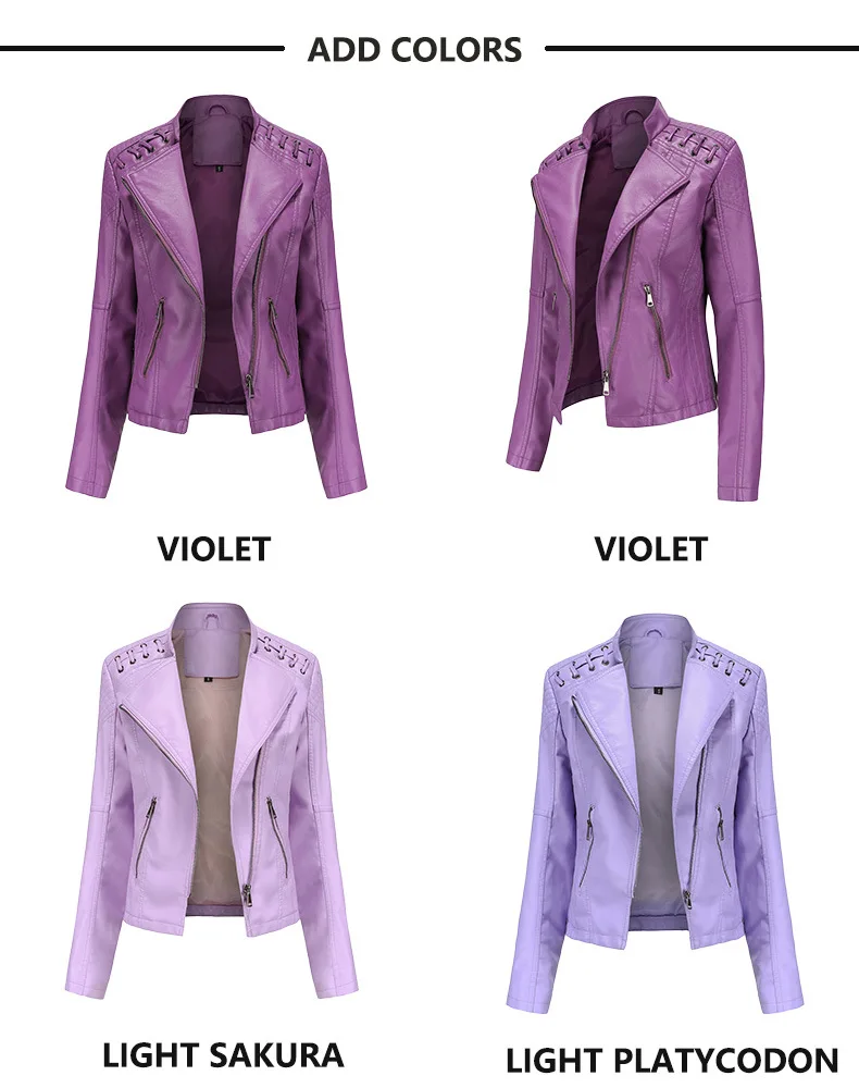 Куртка женская кожаная, короткая, на молнии, с отложным воротником, для езды на мотоцикле, весна 2021