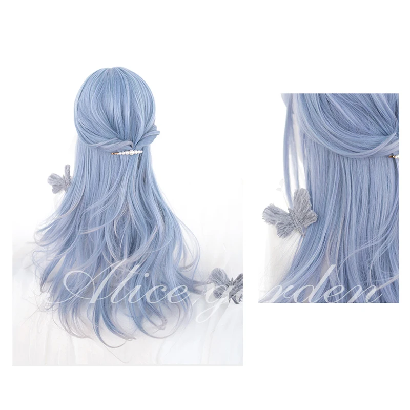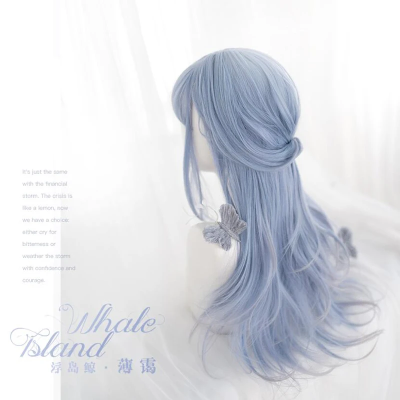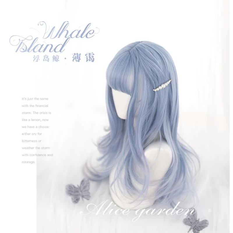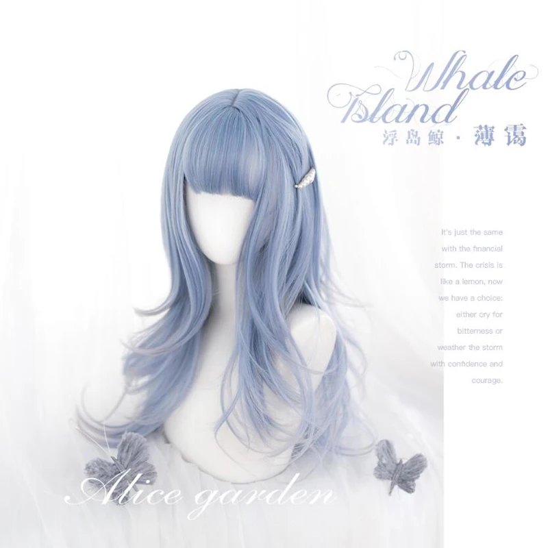 Кит остров Kawaii Лолита парик постепенный синий Харадзюку фея косплей Сладкая челка кудрявые длинные взрослые вечерние волосы для девочек