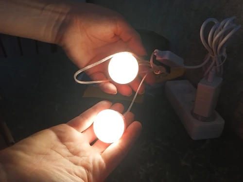 Лампочки понравились. Светят ярко, хоть и небольшие по размеру. Можно менять яркость, шнур между ламп тоже регулируется. Заказом довольна!