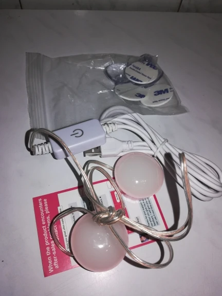 Хорошие лампочки,светят ярко,но на фото это плохо видно.Кнопка сенсорная.Есть в комплекте 3 присоски и двусторонний скотч.На стекле держится хорошо.Купила с купоном продавца за 1.22 доллара.