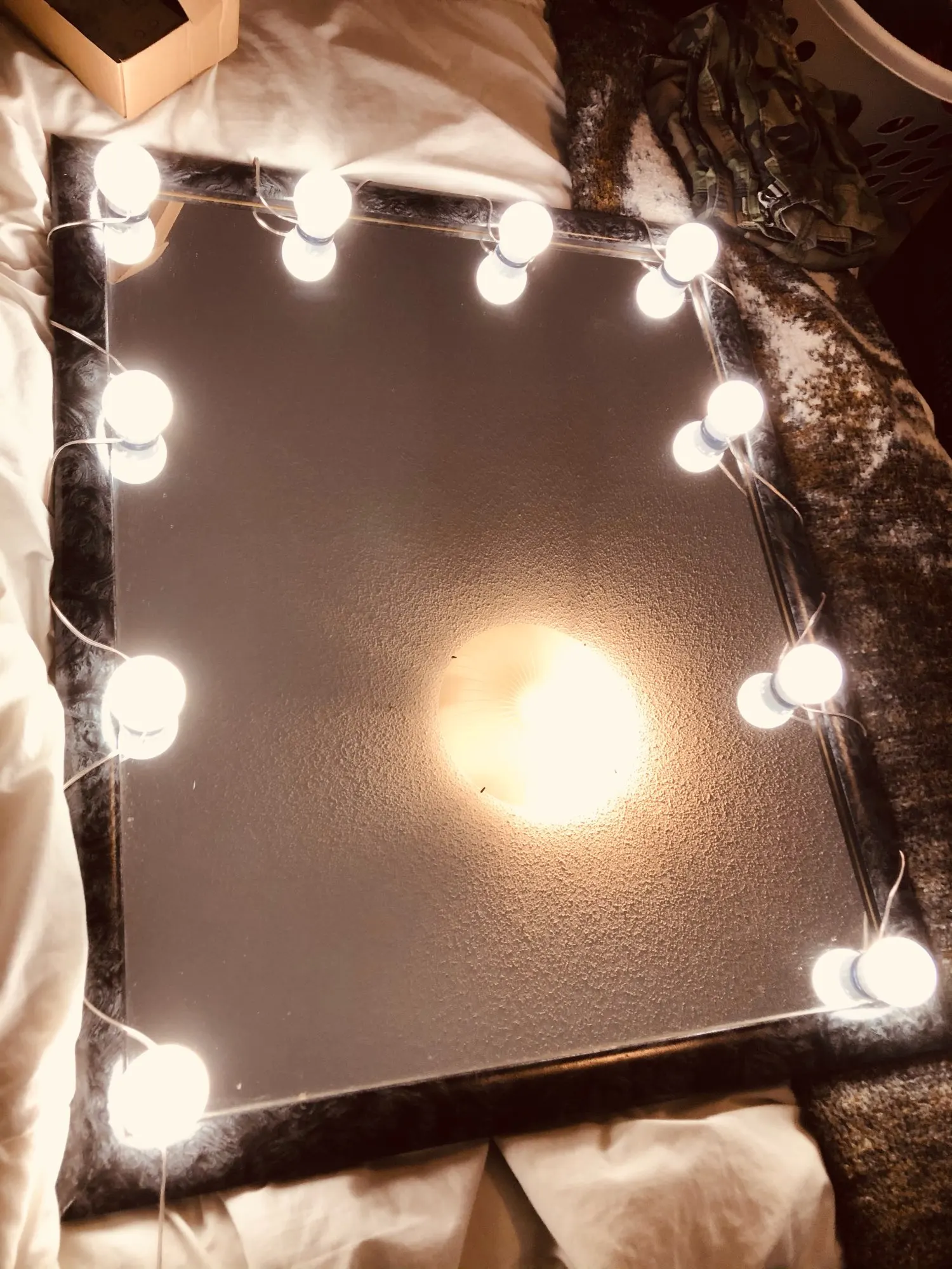 Пришли за 2 недели в Пермь. Сначала показались маленькими и тусклыми. Но, от зеркала отражают и этого достаточно. Вот такое фото у меня получилось. Для меня зеркало с лампочками дорого. Выбрала такие лампочки и прикрепила их к зеркалу присосками.