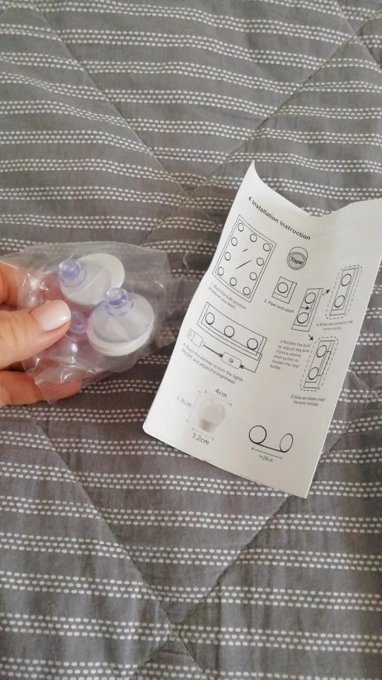Лучший продукт! Если вы хотите быстро превратить ваше обычное зеркало в зеркало для макияжа, это изделие является хорошим решением. Вы можете прикрепить лампы с помощью присосок или с помощью двусторонней клейкой ленты. Совет: если у вас нет розетки рядом с зеркалом, вы также можете подключить освещение к блоку питания. Освещение может регулироваться в зависимости от яркости. Я получил товар в течение двух недель. Настоятельно рекомендуем!. Dǐngjhi chǎnpǐn! Rуguǒ yào kuмесяisù jiarng chabngguī jìngzi biчешn chéng huглянцеng jìng, ZE cchchnpnpǐn shoi yhigje HN N hǎo de jijujufāngā'n. Nina kěyyshǐyng NG xypan huò shuang miаng jiaodust I lаi gùdng NG DNG NG. Tishty: ruguǒ jngngzi fjjiyn méiyǒu diрежюан chamzuò, yě kyyjijiang zhuminng shébéi lisanjiē dado ydàding. Zhioming kěyytiaojie dчешo bótóng de liмесяngdù. Wzài liǎng zhōu néi shōu dчешole chnpnpǐn. Qianglije tuzijiпряn!