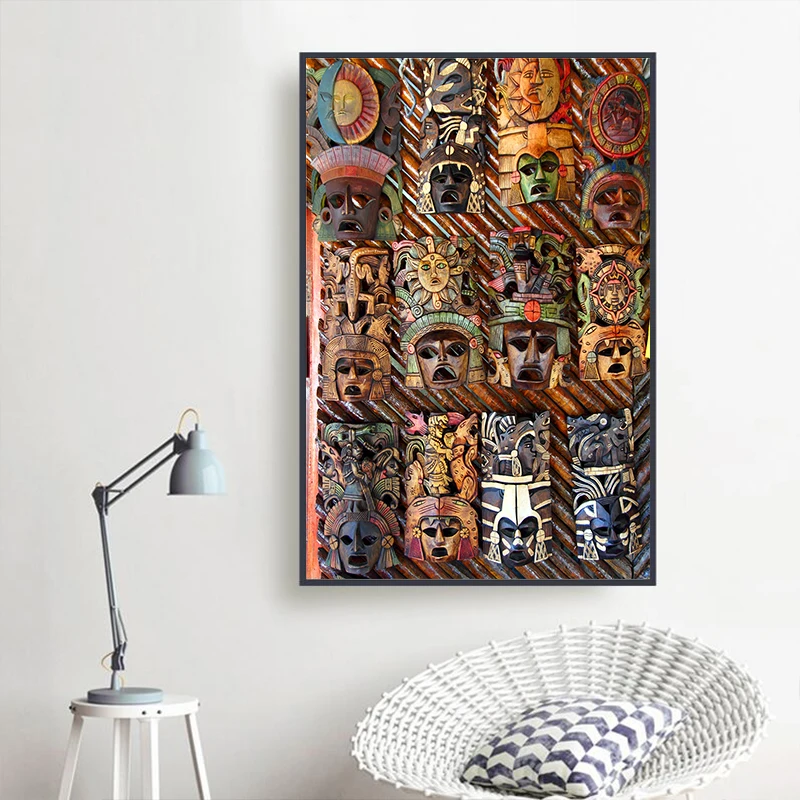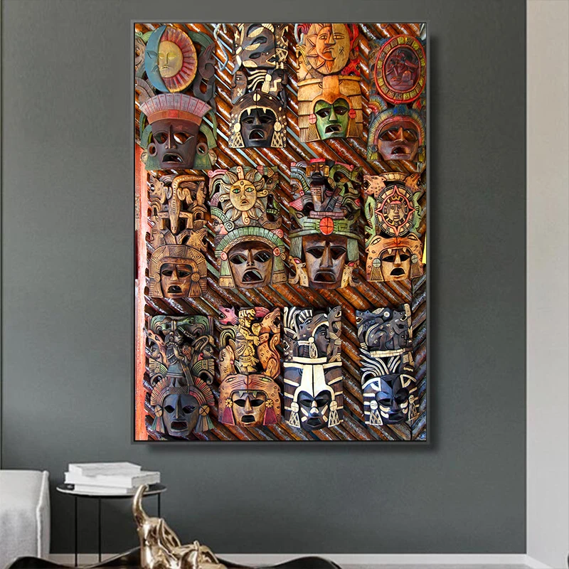 Древняя культура, кавычки, холст, постеры и принты, картина, вечерние, декор для гостиной, мексиканская маска, Настенный декор, художественные картины