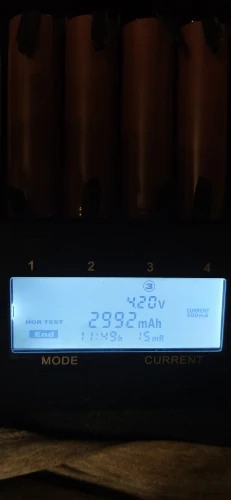 Банки вроде норм сопротивление изначально показывали 75 ом после тройного прогона заряд разряд показывают 45 47 ом, вес 44г, ёмкость 3000. Воткнул в свой акб для шуруповерта посмотрим на практике что получится