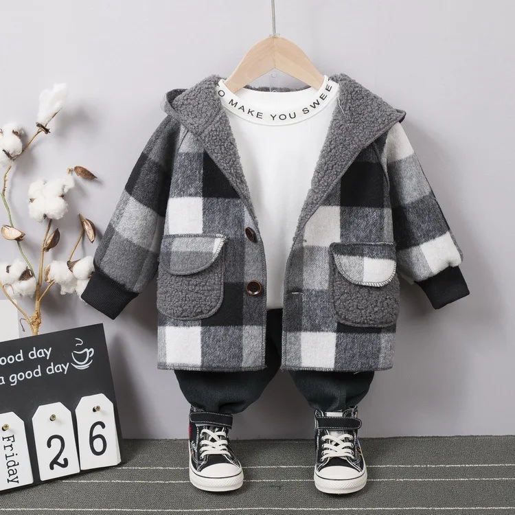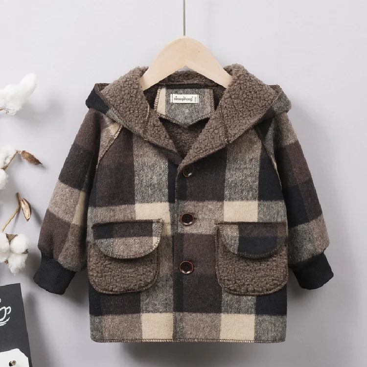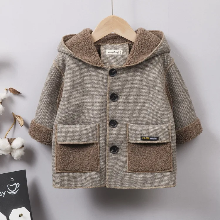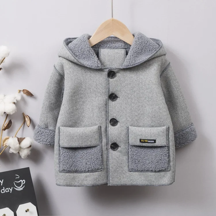 Зимнее Новое Детское модное твидовое плюшевое пальто От 0 до 5 лет, красивое однотонное теплое плюшевое пальто для мальчиков