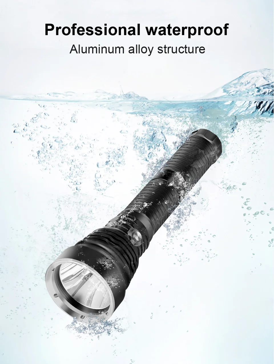 Фонарик для дайвинга, светодиодный, водонепроницаемый, глубина до 500 м, XHP90.2
