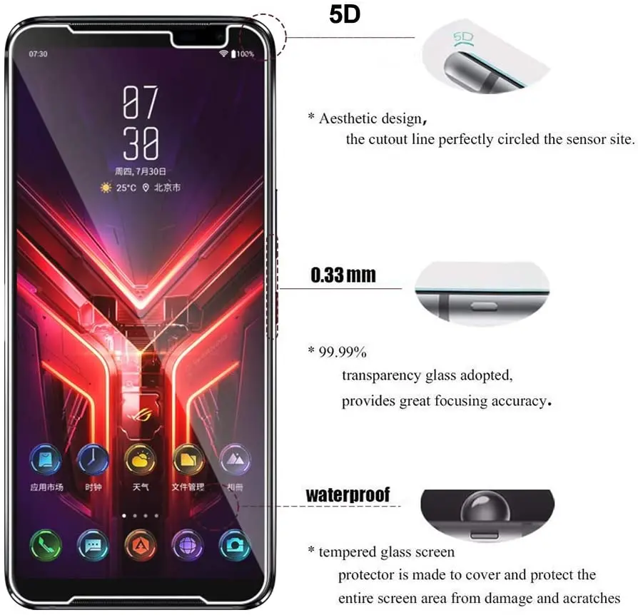 Закаленное стекло для Asus ROG Phone 3 Strix, Защитное стекло для экрана Asus ROG Phone 3 Strix Edition, защитная пленка