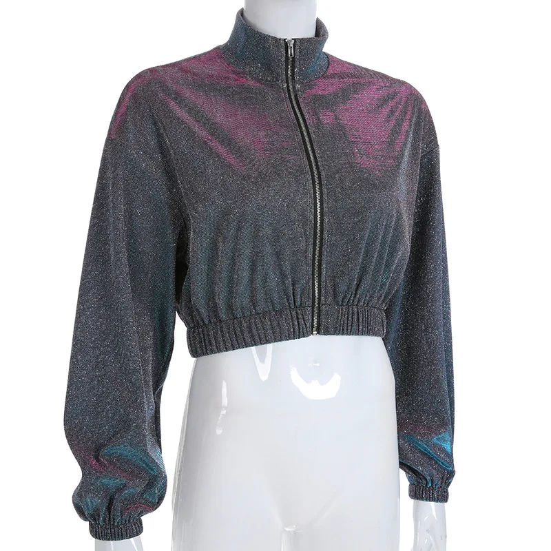 Осенне-зимнее двубортное пальто осень 2020 Новая Сексуальная Клубная одежда с длинным рукавом блестящие пупка куртка женская одежда Mujer Chaqueta кардиган на молнии