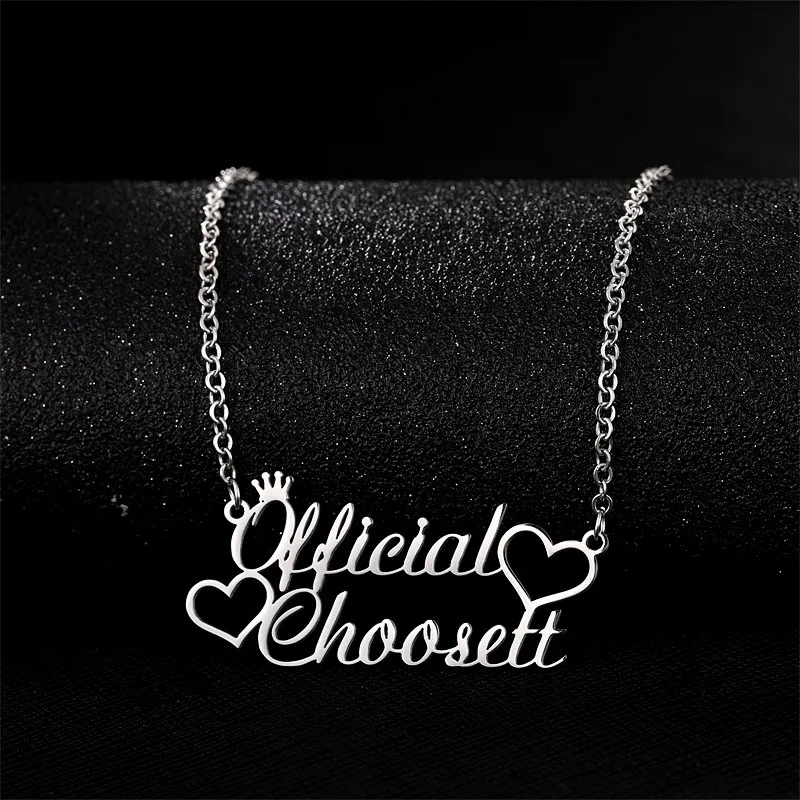 Ожерелье с именем на заказ, ожерелья с именем короны 2 с сердцем для женщин и девушек, персонализированная именная табличка, чокер, ювелирные изделия из нержавеющей стали