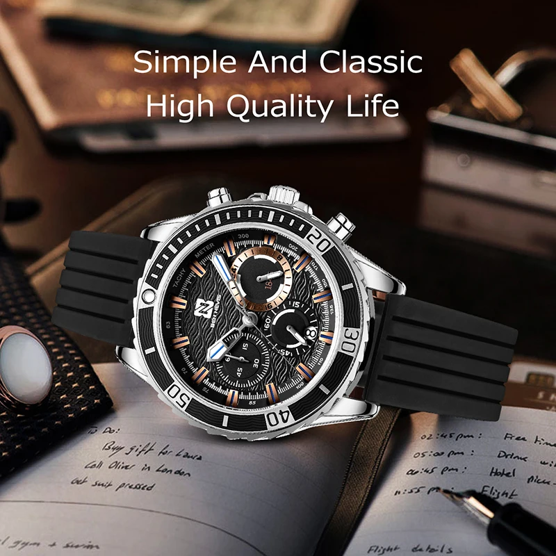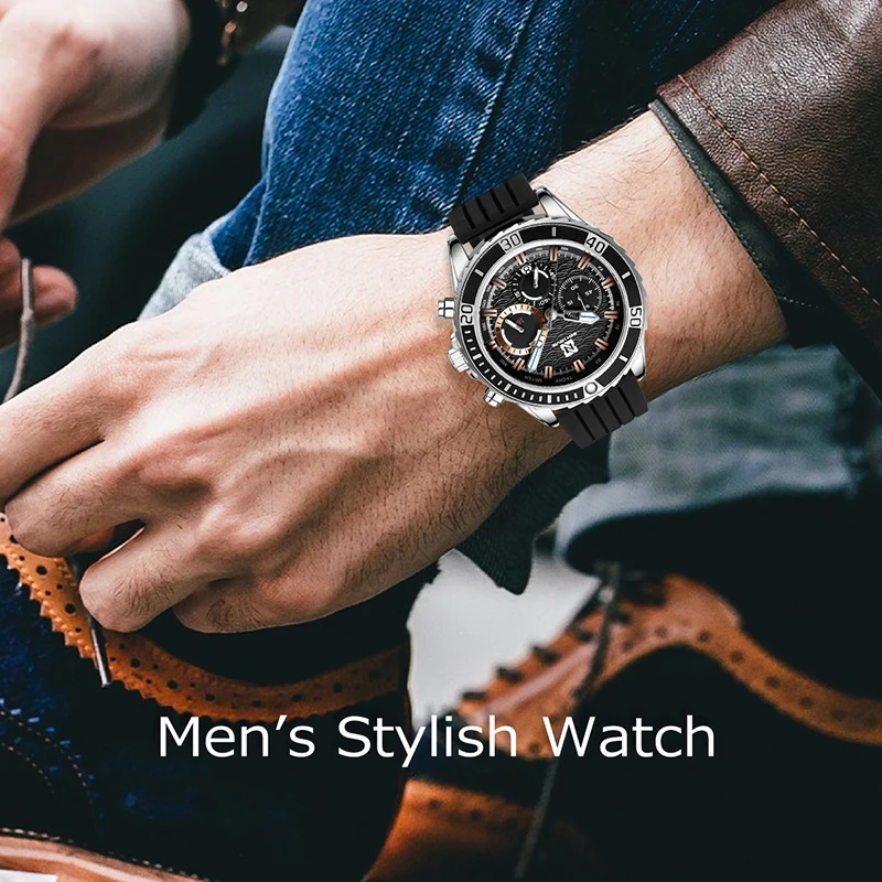 Часы наручные Ben Nevis мужские в стиле милитари, роскошные брендовые водонепроницаемые Модные черные наручные с силиконовым ремешком, QW011