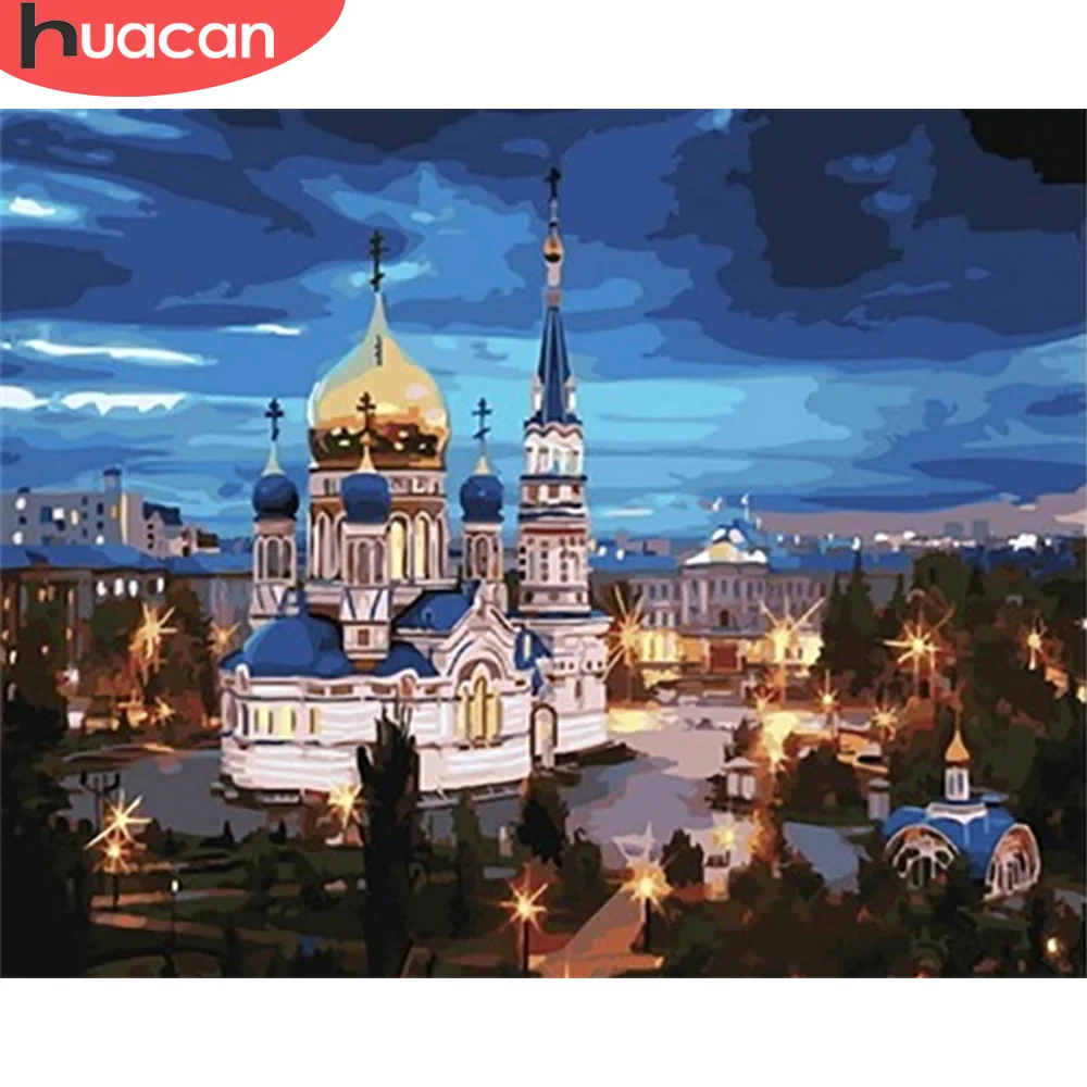 HUACAN живопись по номеру Замок рисунок на холсте Ручная роспись искусство подарок DIY фотографии по номеру ночные пейзажные наборы домашний декор