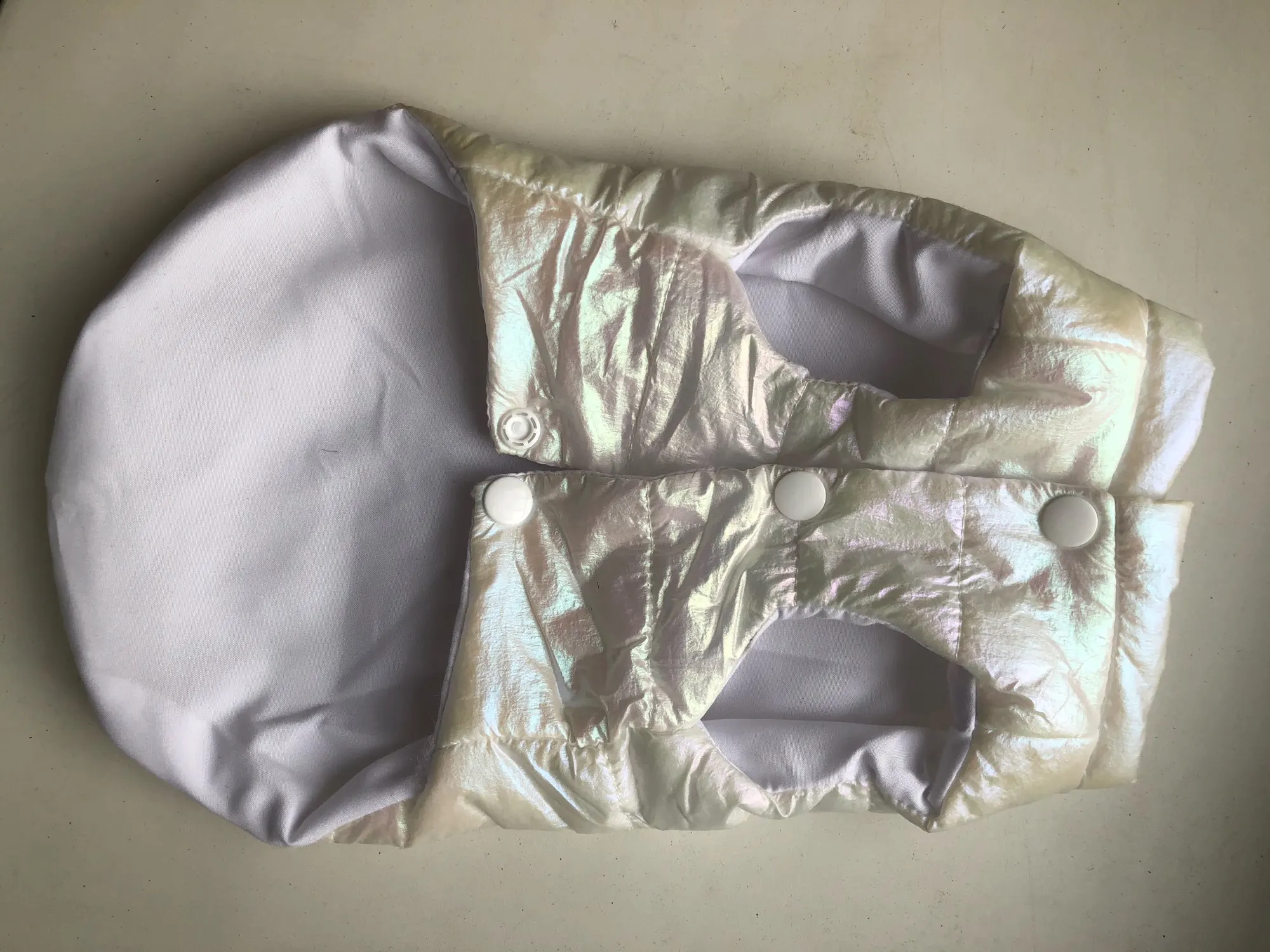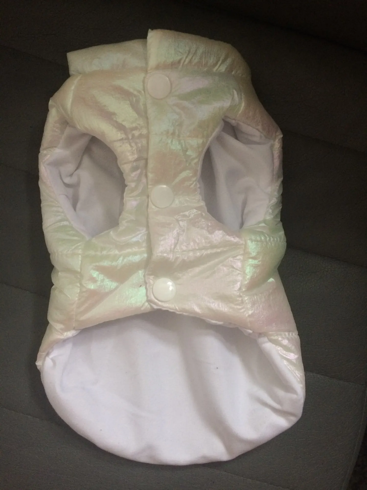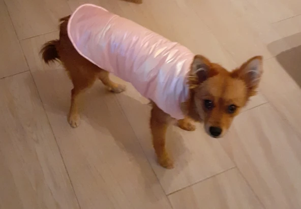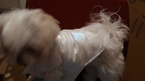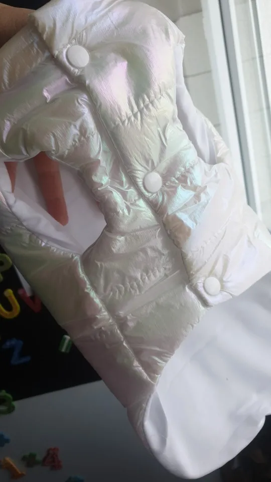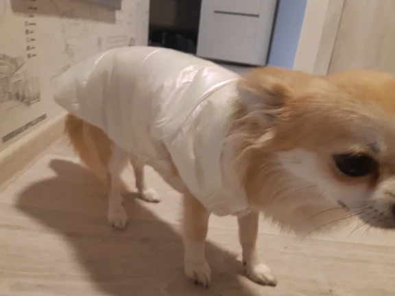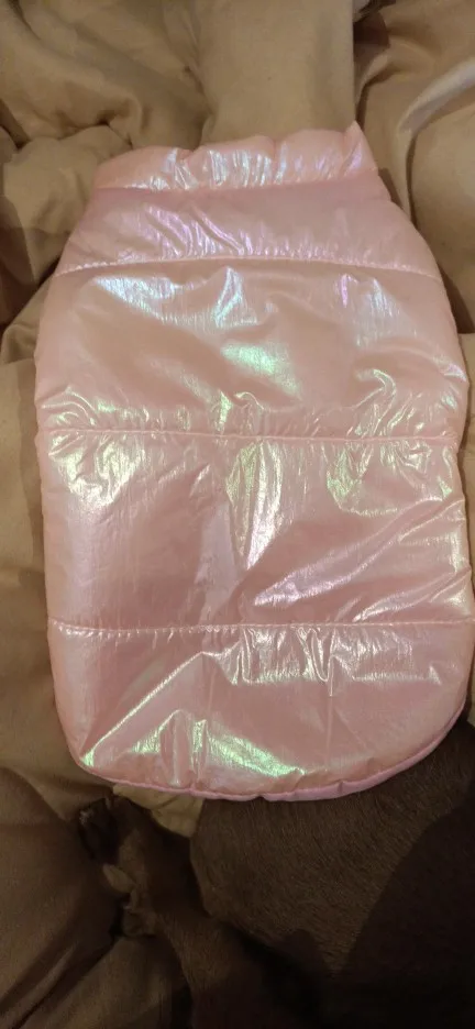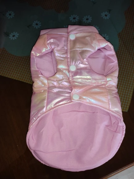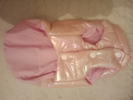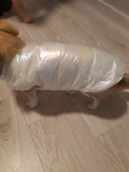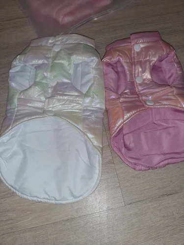 Посилку отримала! Цілком задоволена, але є нюанси , курточка прийшла гарна, з тим відтінком , що і хотіла , розмір добре підібрала, на собаку йорка 3 кг( взяла М ) і не проградала. Але де закльопки є нерівно прибиті закльопки, одна вище друга нижчи відповідно утворюється невеличка дирка між закльопками. Але за ці гроші -вартує! Бо знизу цього при носці не видно! Тому покупкою у будь якому разі, задоволена і рекомендую.