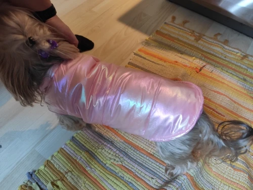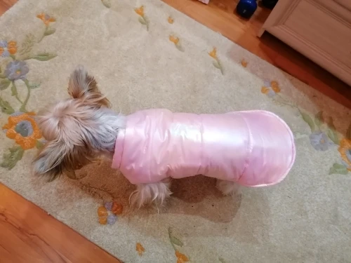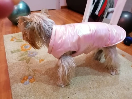Хорошая курточка, по размеру идеально подошла. Заказывала на мини йорка, размер S, длина по спине 24 см. Качеством довольна, пришла быстро.