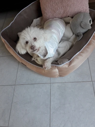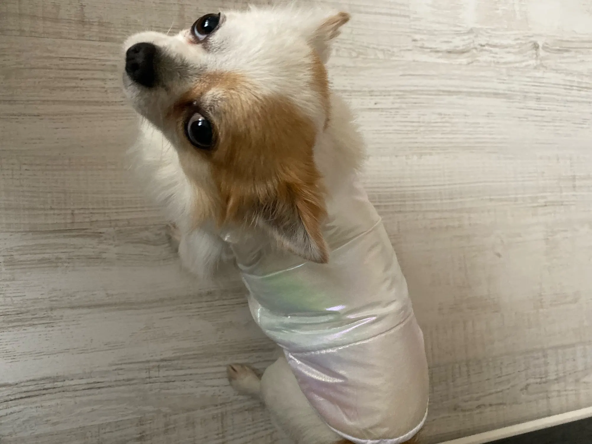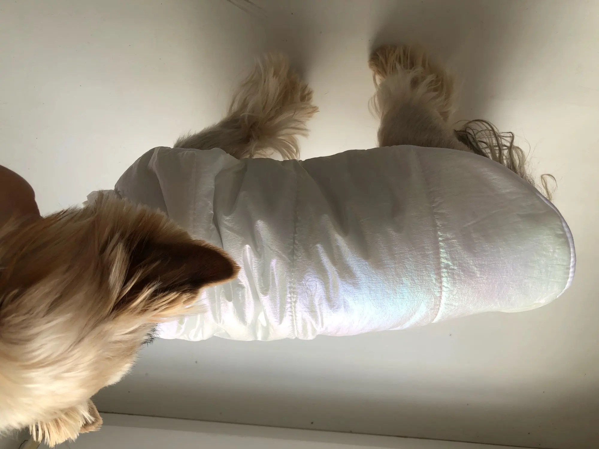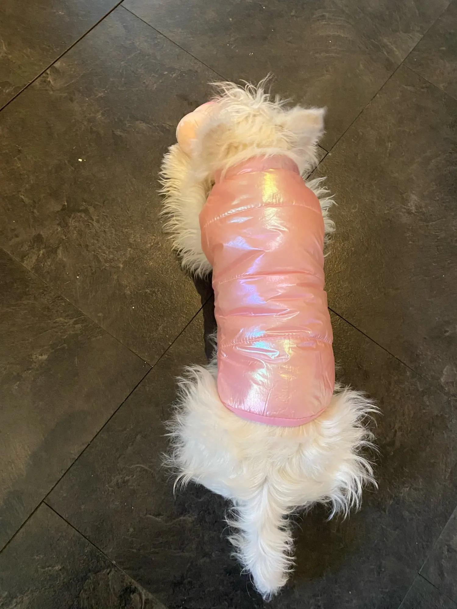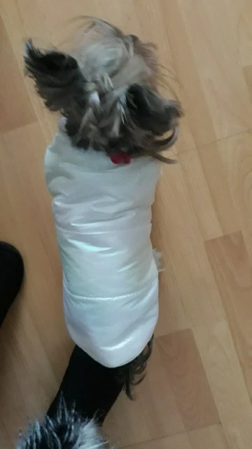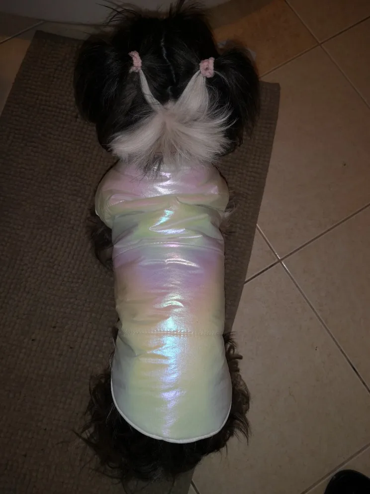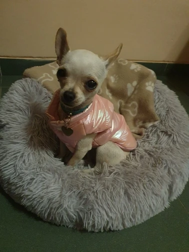 Superbe manteau couleur douce et jolie . Taille S parfait pour mon chihuahua de 1K700 .