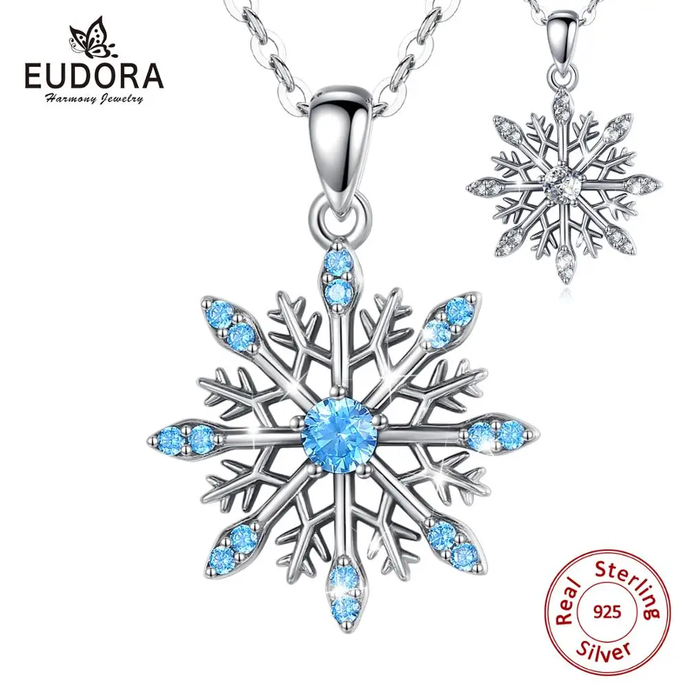 Eudora, новинка, Стерлинговое Серебро 925 пробы, синий кристалл, снежное ожерелье, Белый CZ, ожерелья, элегантные ювелирные украшения, два цвета, цветок, подвески, D582