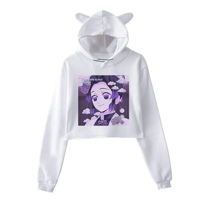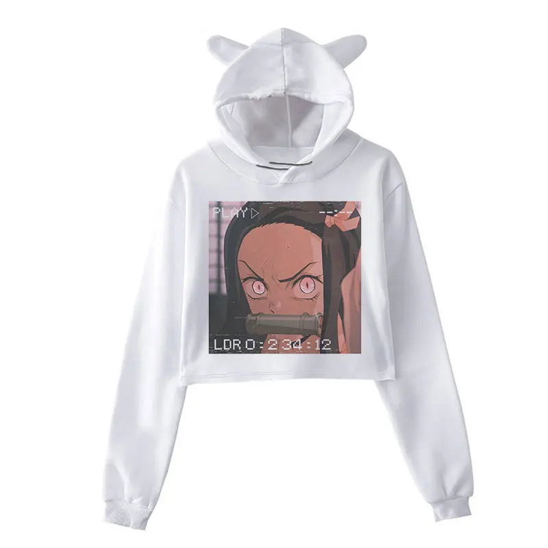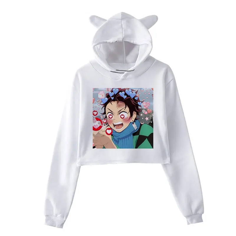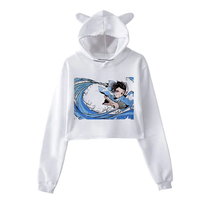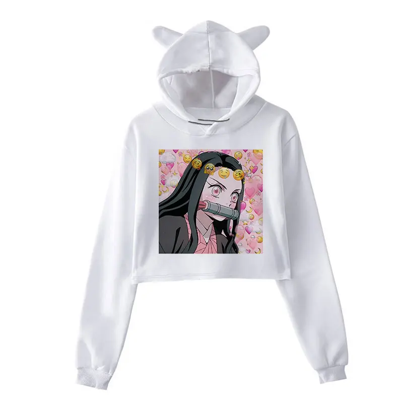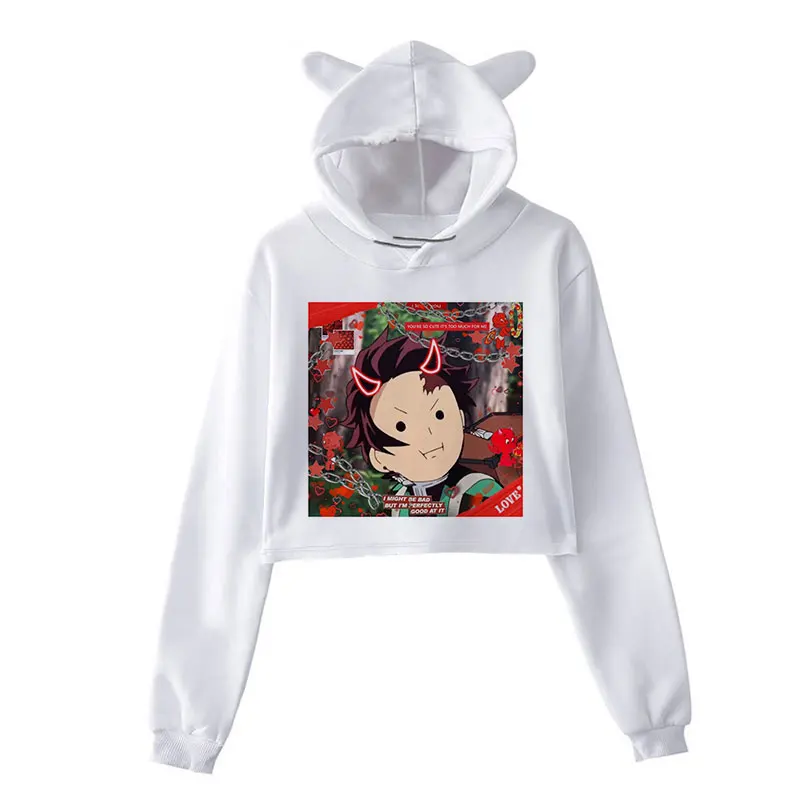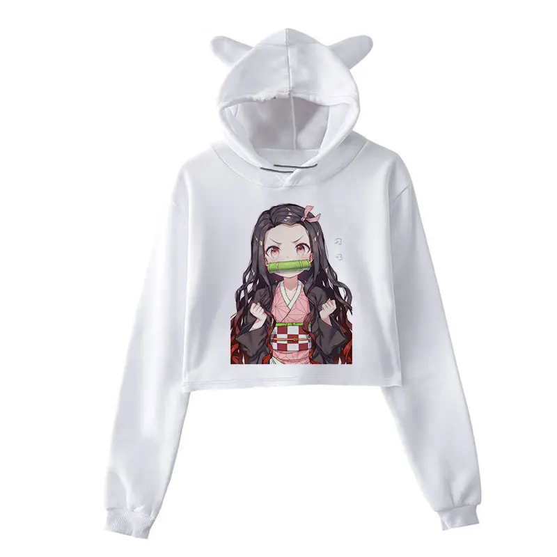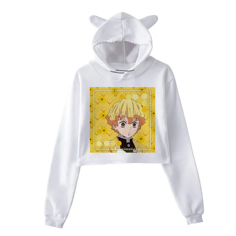 Милый Женский свитшот в стиле Харадзюку С Капюшоном, рассекающим демонов, зимний Женский свитшот No Yaiba, женский короткий топ с длинным рукавом