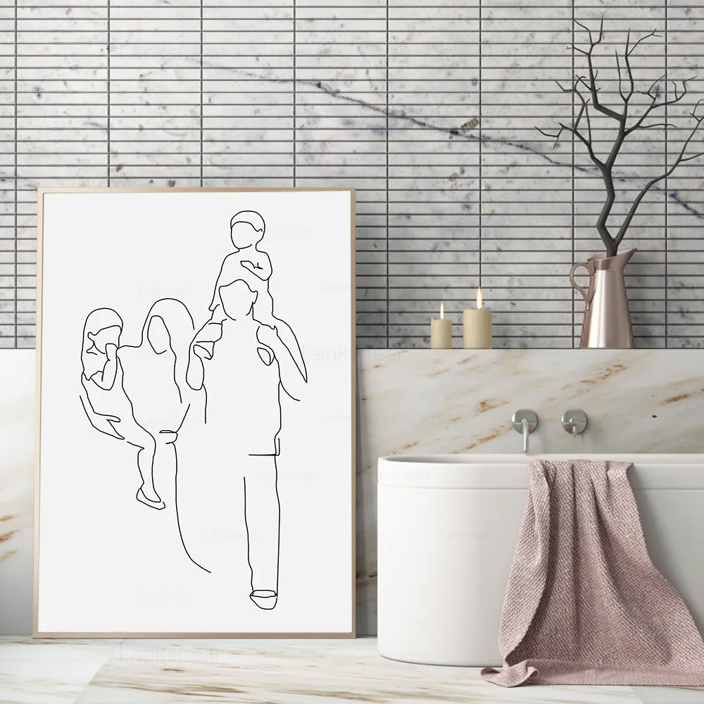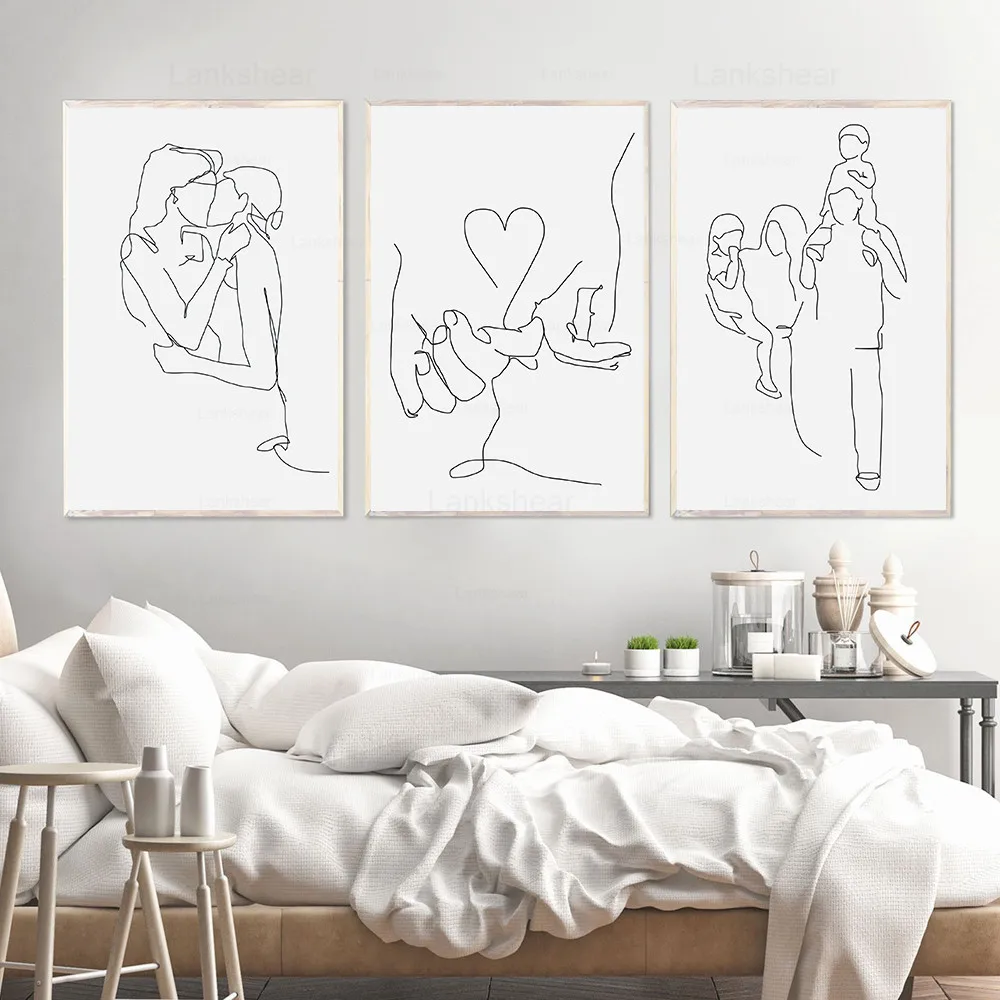 Семейный художественный постер Love Hand, рисование линий, абстрактный поцелуй, Минималистичная Настенная картина, рисунок на холсте, искусство
