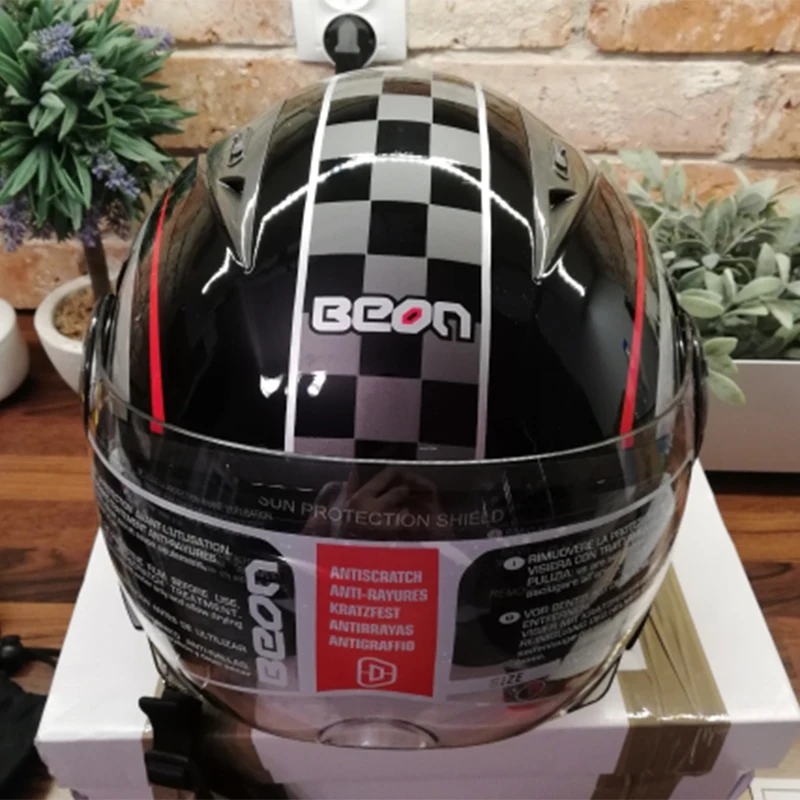 Шлемы BEON гоночные с двойным козырьком, 34, мотоциклетные шлемы для мужчин и женщин, мотоциклетный шлем, винтажный Ретро Байкерский шлем для скутера