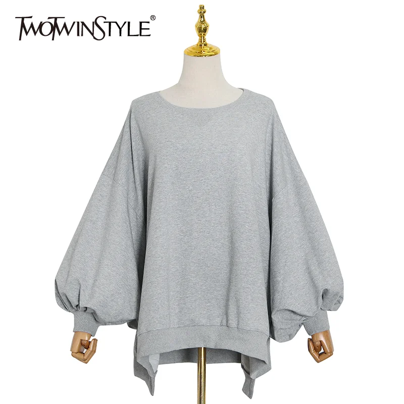 Женский свитшот TWOTWINSTYLE, Белый Свободный свитшот с круглым вырезом и рукавами летучая мышь, с Боковым Разрезом, на осень, 2020