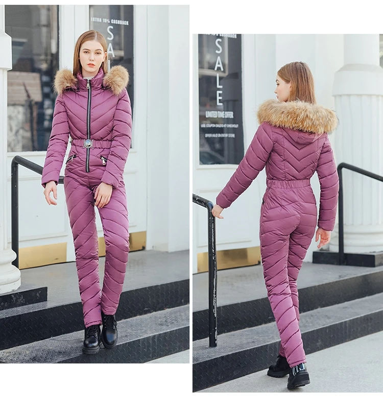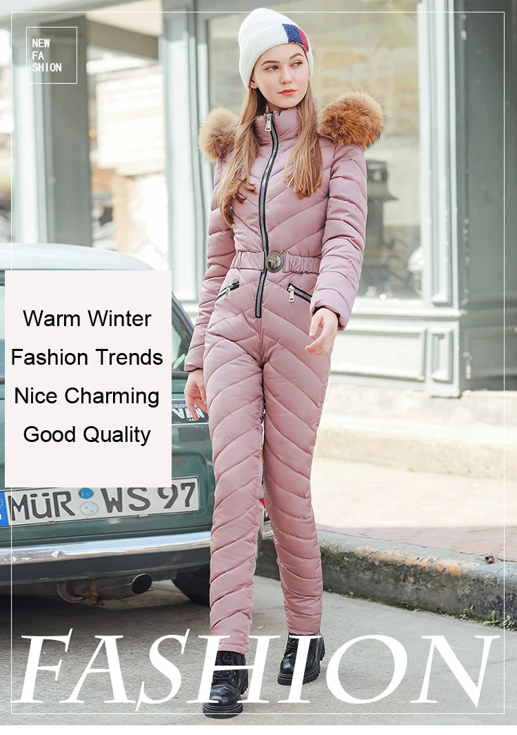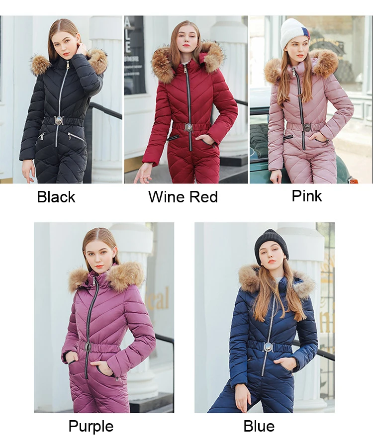 Модные зимние комбинезоны с капюшоном, парка с большим мехом, теплая хлопковая подкладка, лыжный костюм с прямой молнией, женские повседневные спортивные костюмы, новинка