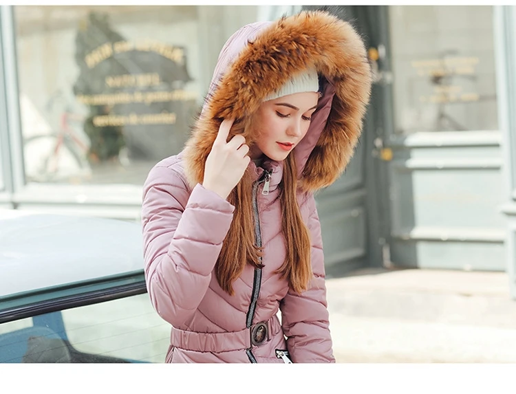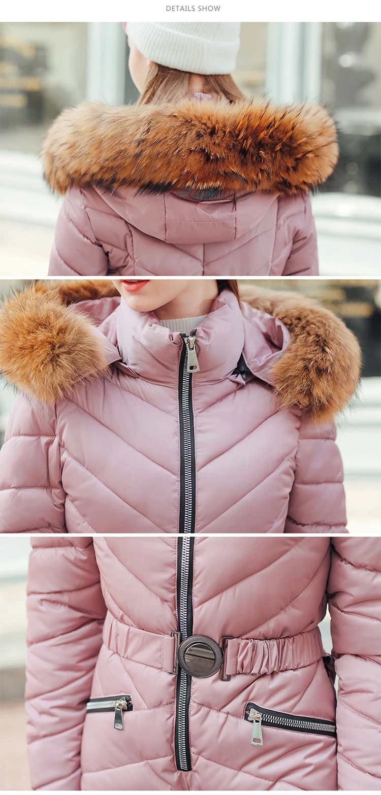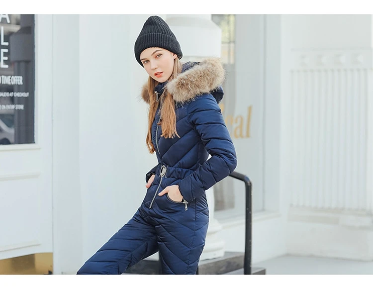 Модные зимние комбинезоны с капюшоном, большая меховая парка, теплый лыжный костюм с хлопковой подкладкой и поясом, прямые женские повседневные спортивные костюмы на молнии, новинка