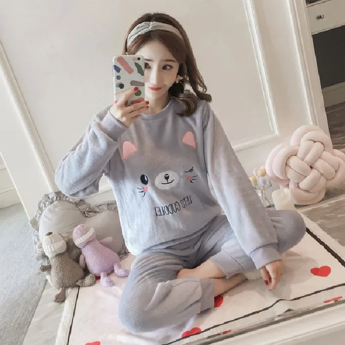 Пижама WAVMIT Женская фланелевая, на осеньзиму, теплая, с принтом, с длинным рукавом, 2020