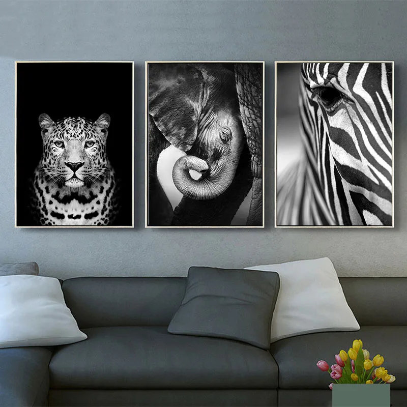 Абстрактная картина с черными и белыми животными, Зебра, лев, леопард, холст, плакат, настенная живопись, современный декор для гостиной
