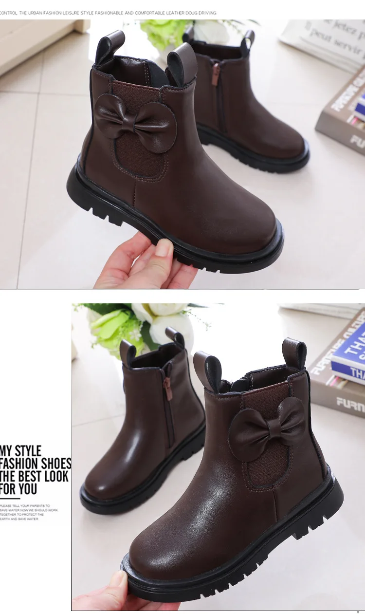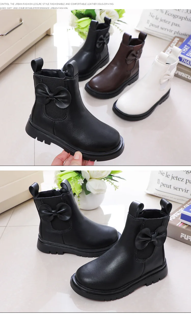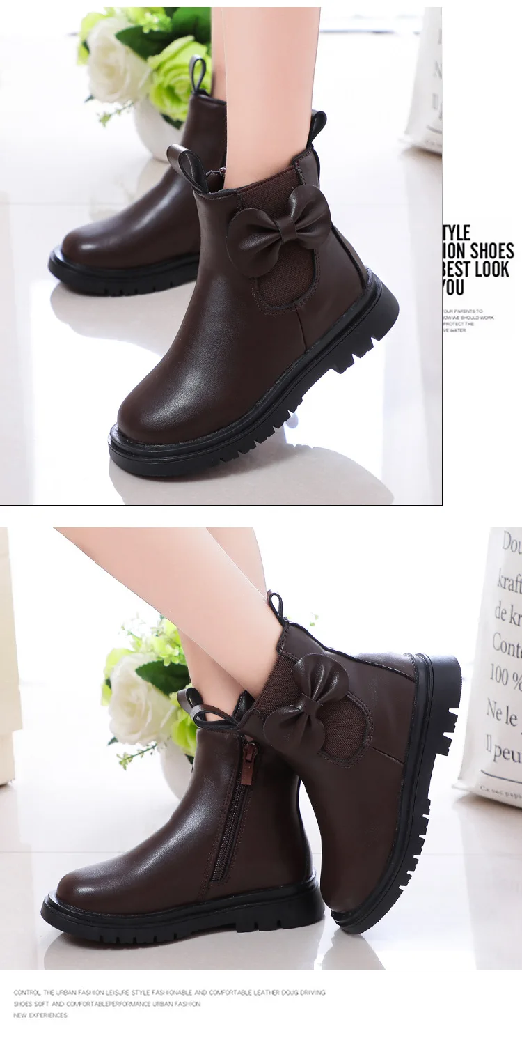 Осень Зима 2020 новые детские кожаные ботинки для девочек модные водонепроницаемые ботинки с бантом обувь для больших детей От 3 до 12 лет