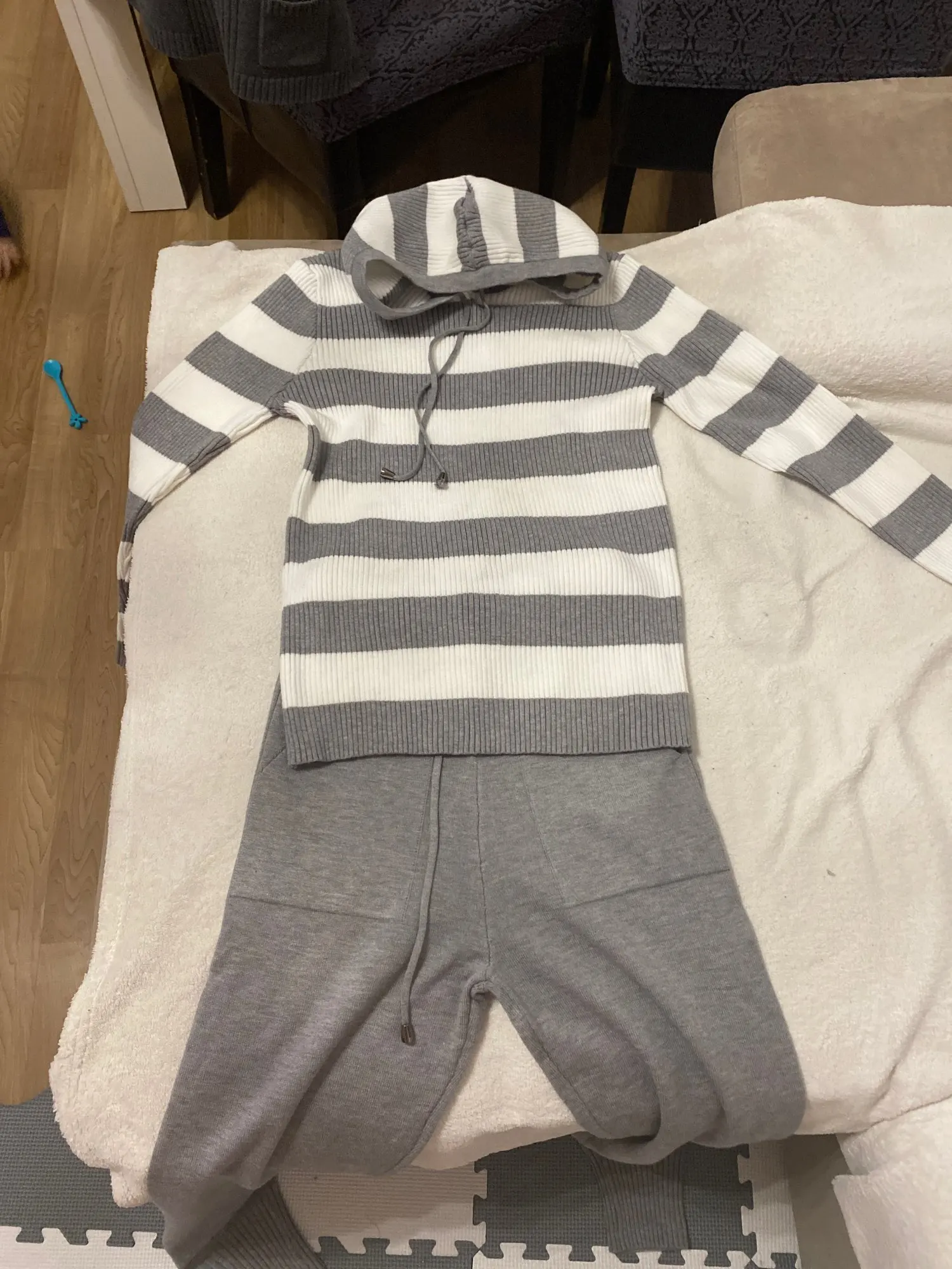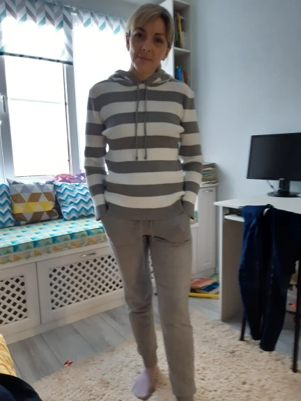 пришло очень быстро, трико тонкий трикотаж, поэтому если ноги с изъяном, лучше не брать, все недостатки видны, вот такие тонкие и обтягивающие, джемпер обалденный, мягкий и теплый, в целом удачная модель и приятный серый цвет