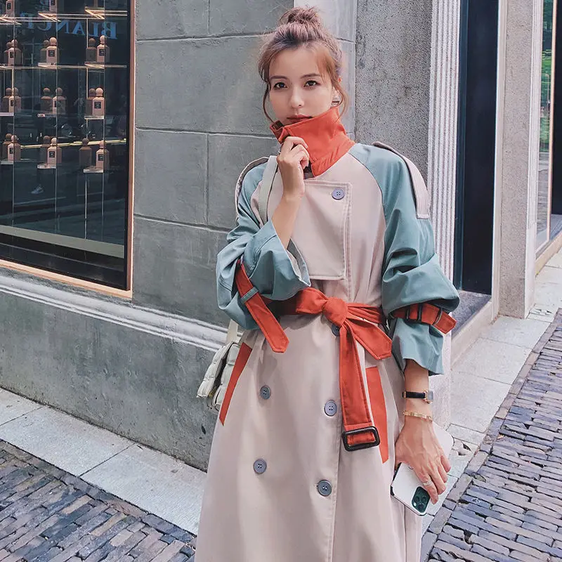 Женский Длинный Тренч, ветровка в стиле пэчворк светильник Кая Повседневная ветровка для осени и зимы, 2020
