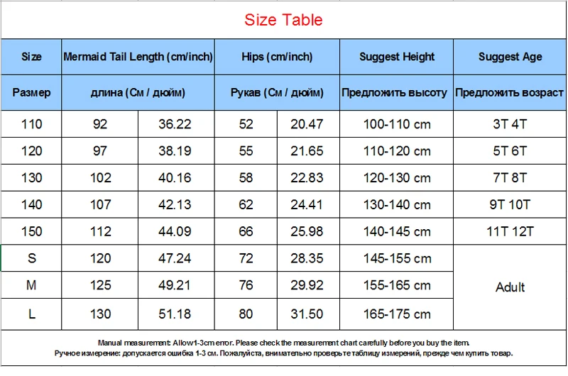 Посылка включает:Стиль 1: только хвост MermailСтиль 2:2 шт (1 * хвост русалки + 1 * монофин)