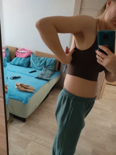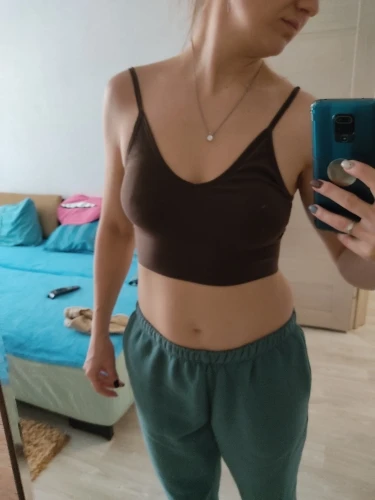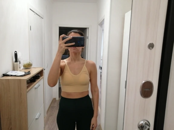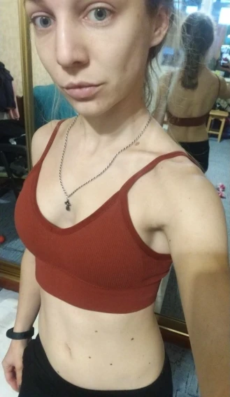 ткань, голая синтетика, не очень приятная к телу. Я поправилась и сейчас в размере S-M. На мне топ сидит очень плотно.