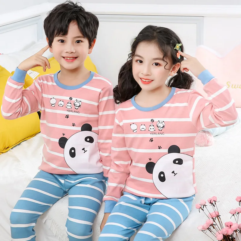 Детские пижамы для мальчиков и девочек 2 шт., Детская осенняя хлопк...