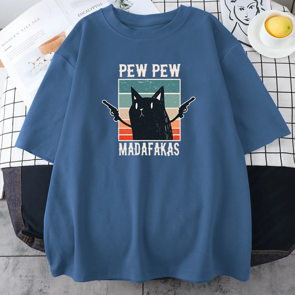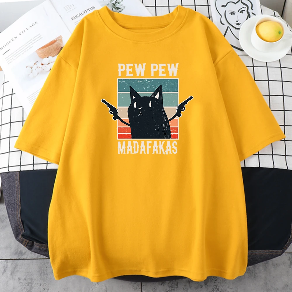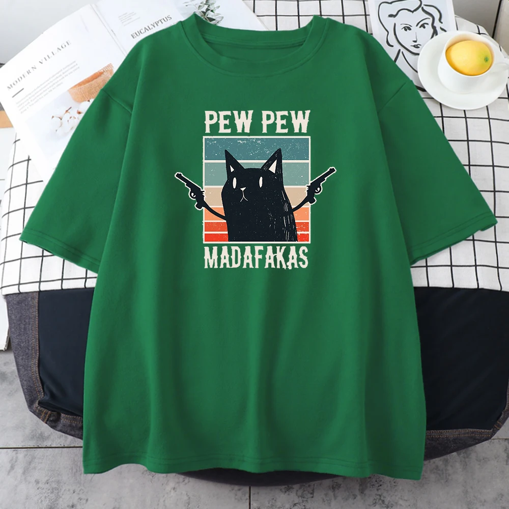 Женские футболки Pew с принтом двух пистолетов и кошек, Женская при...