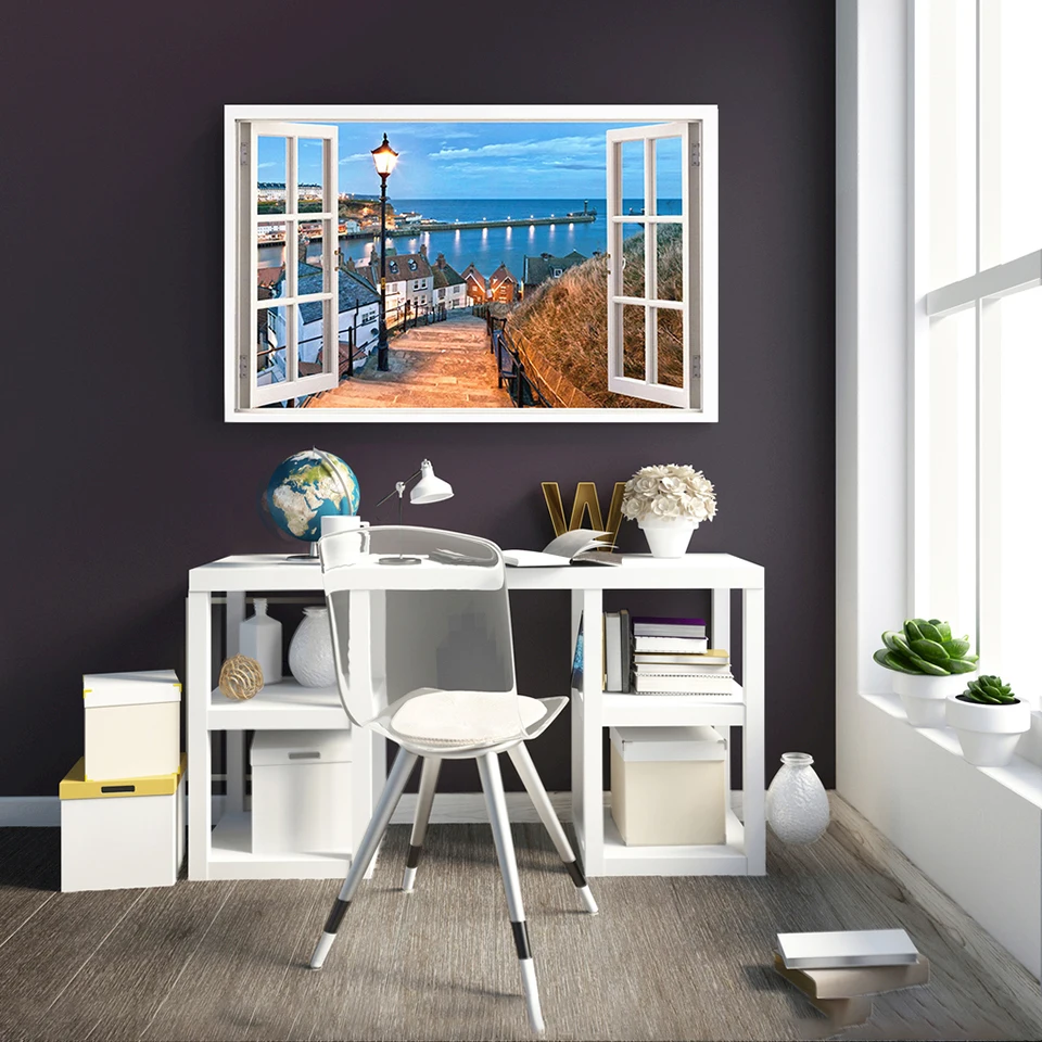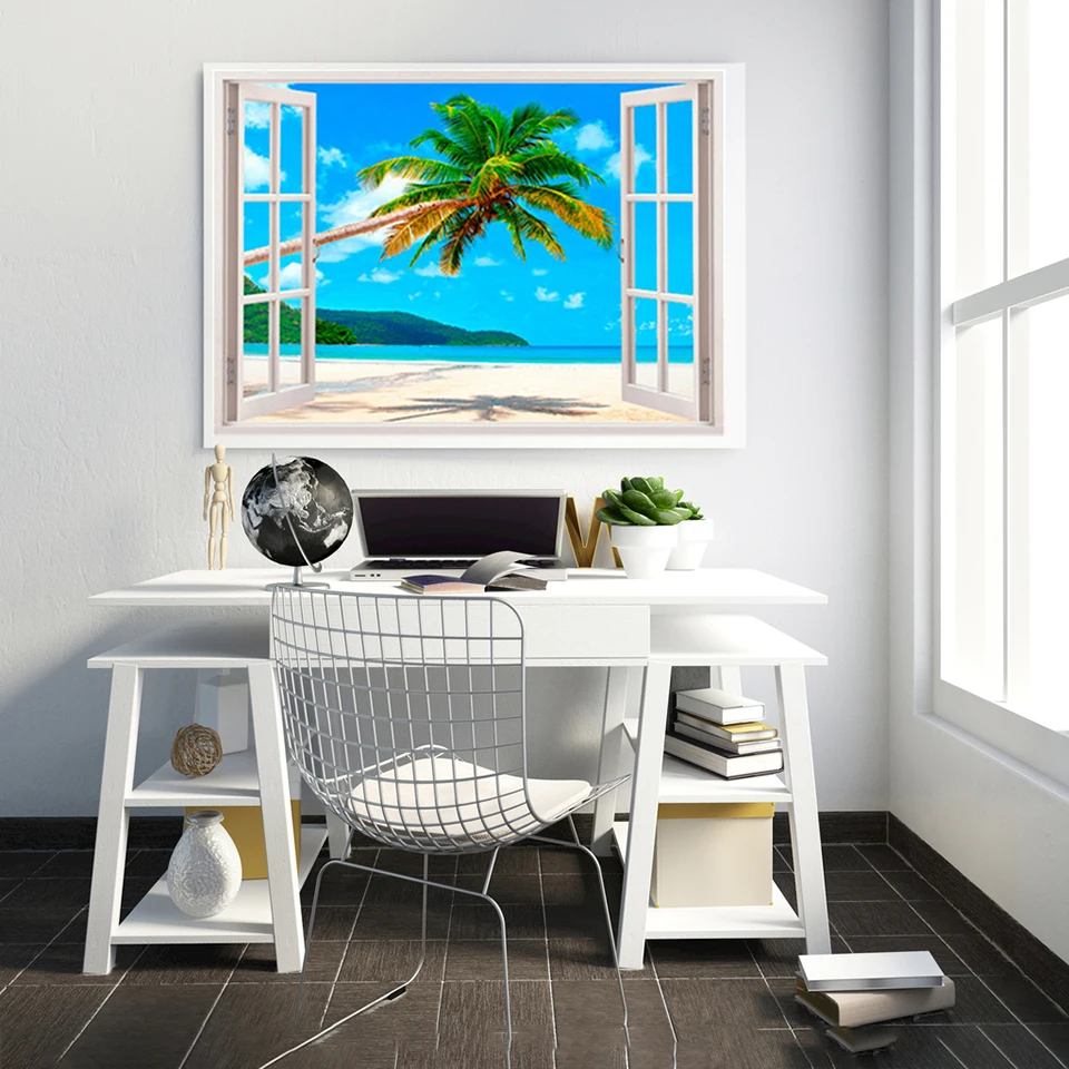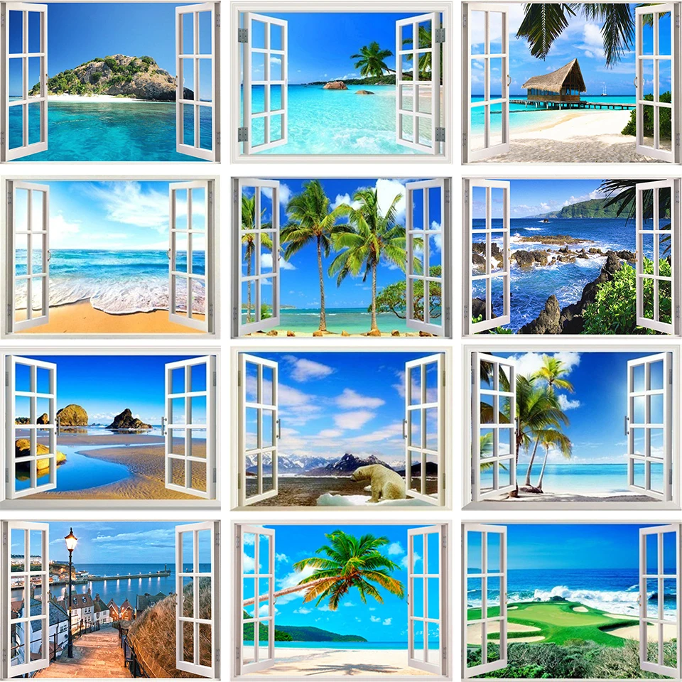 Полный квадратный алмаз 5D DIY Алмазная картина окно пейзаж вид на море 3D вышивка крестиком набор украшение дома подарок мозаика