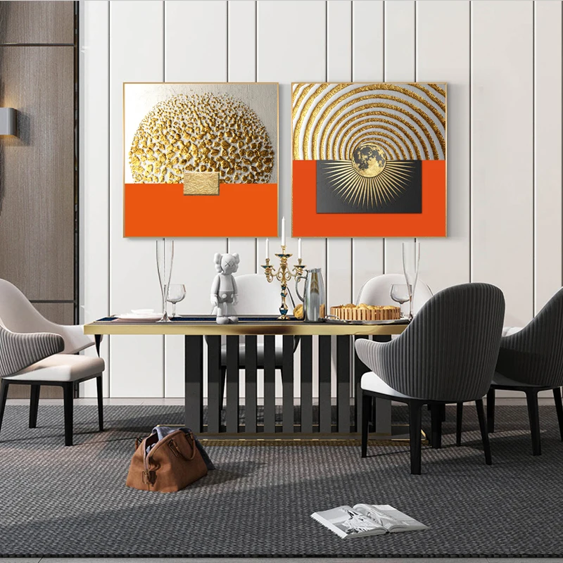 Роскошные абстрактные оранжевые картины на холсте, скандинавские плакаты и принты, квадратная текстура, настенные картины для гостиной, домашний декор