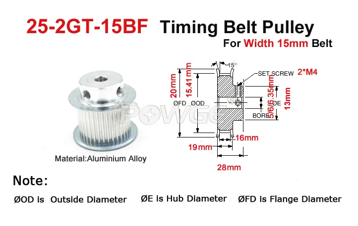 Номер модели25teeth 2GT Timing Pulley Ft Width 15mm GT2 Belt