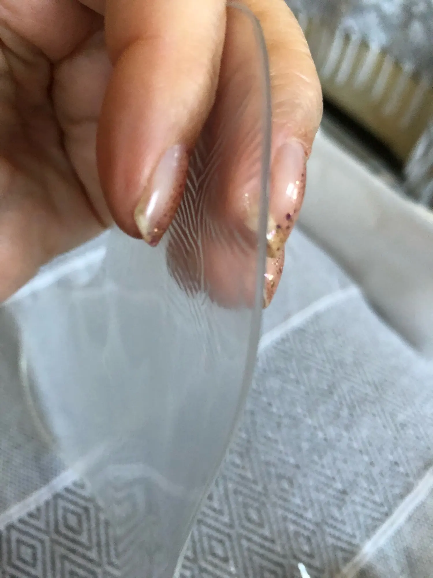 Гелевая накладка пришла очень измятой, хочется надеяться, что разгладится...