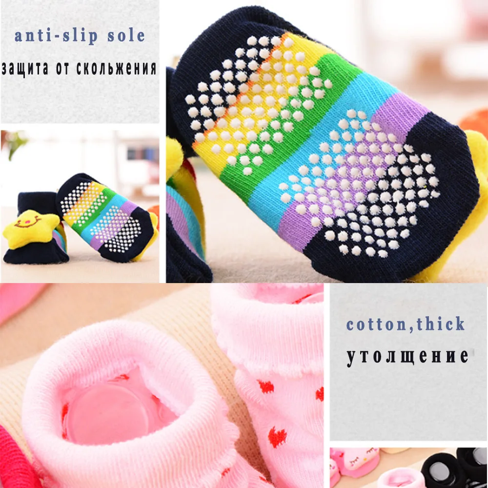 Носки для новорожденных девочек и мальчиков, дешевые детские хлопковые нескользящие, с стереоскопическим Изображением Животных, Мультяшные, для младенцев