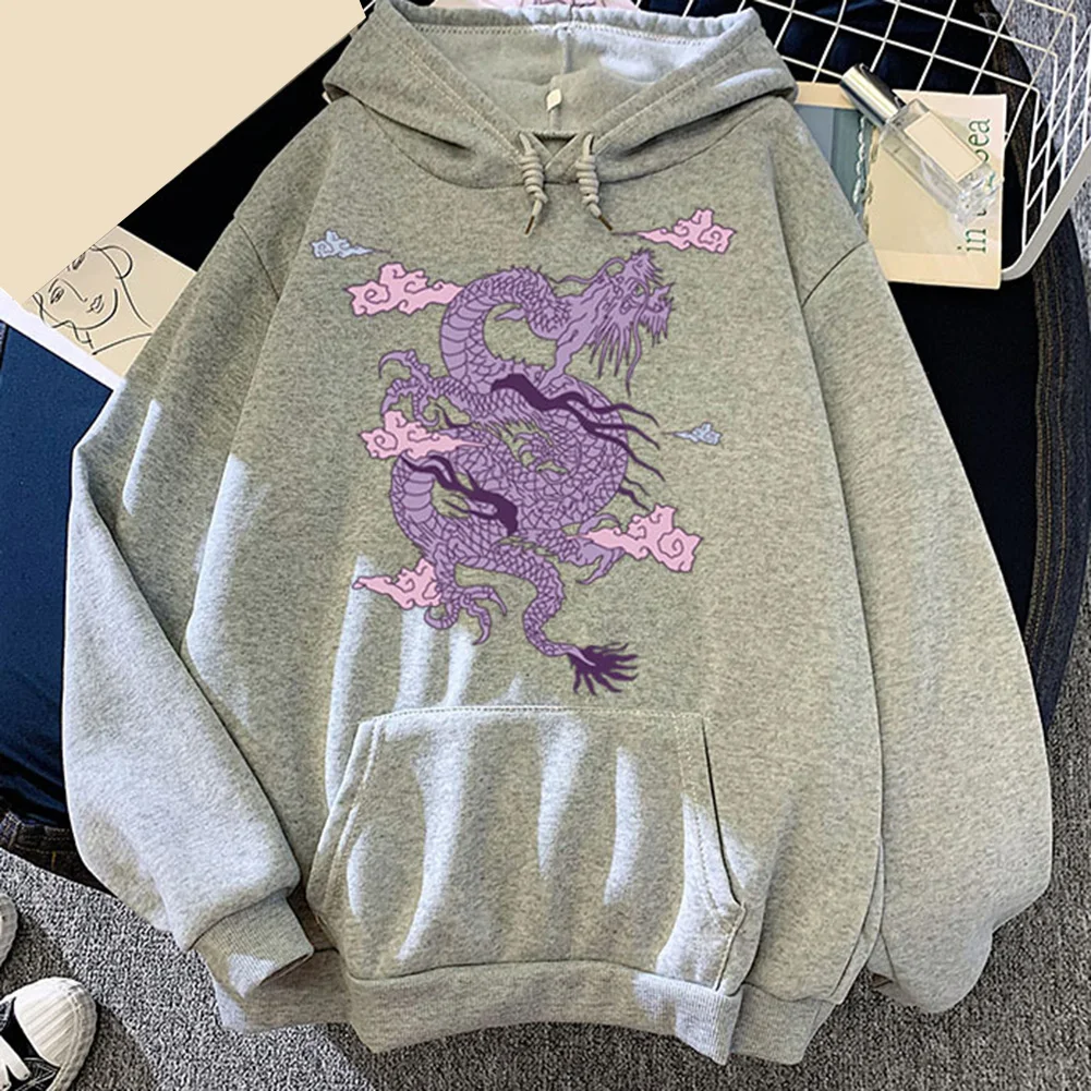 Свитшот женский с принтом дракона, милая Толстовка в стиле хип-хоп, кавайный оверсайз Топ в стиле Харадзюку, одежда на осень