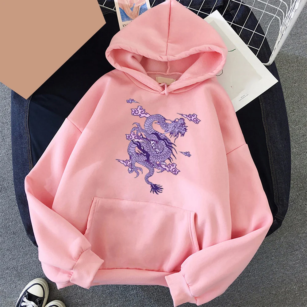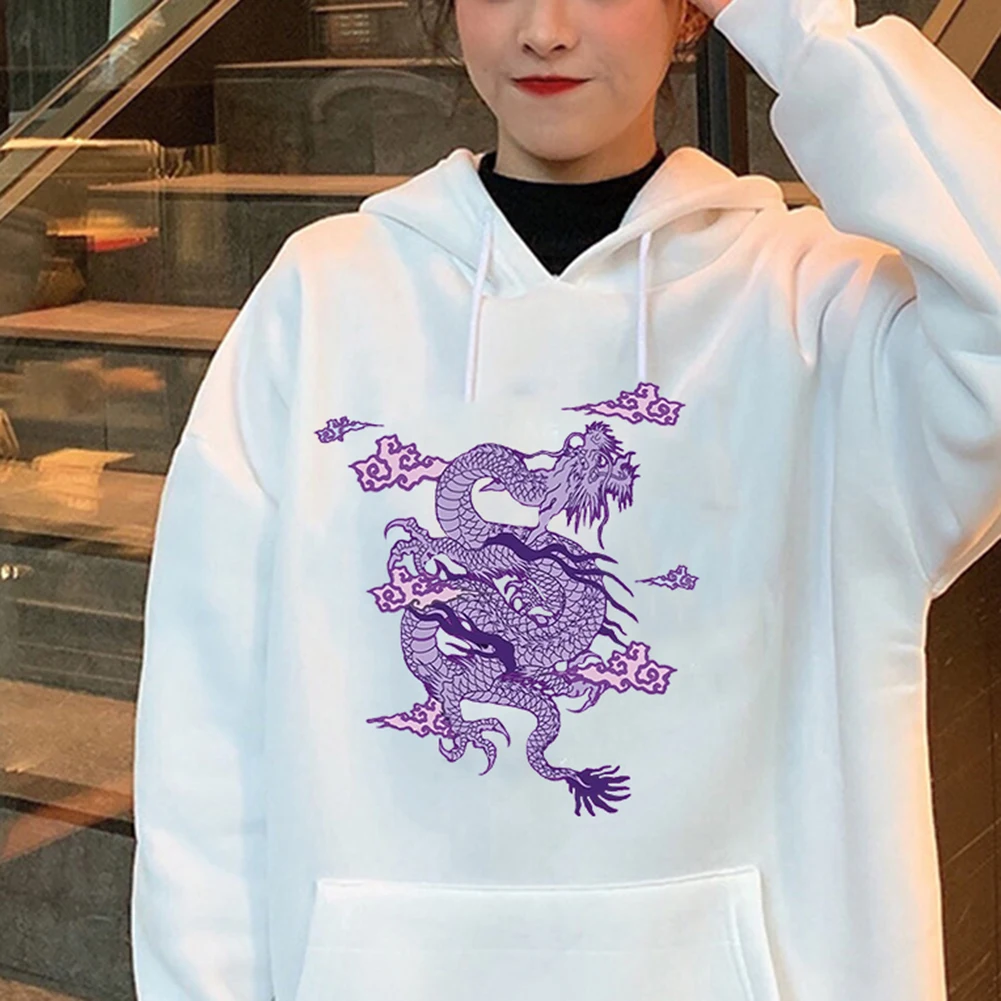 Женские толстовки с капюшоном с принтом дракона, толстовки с длинными рукавами, пуловеры с большими карманами, свободные топы в стиле кэжуал, модный свитер, уличная одежда 45