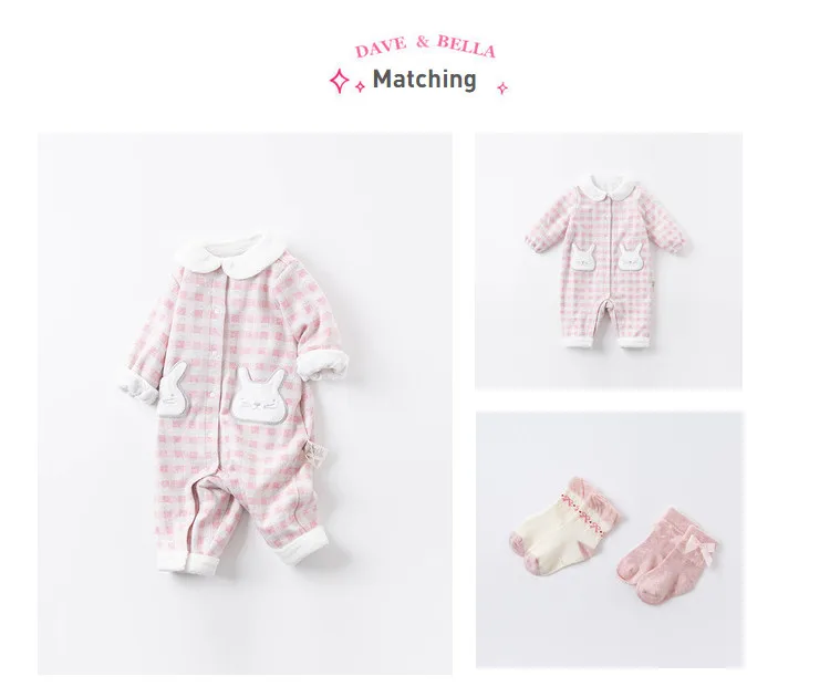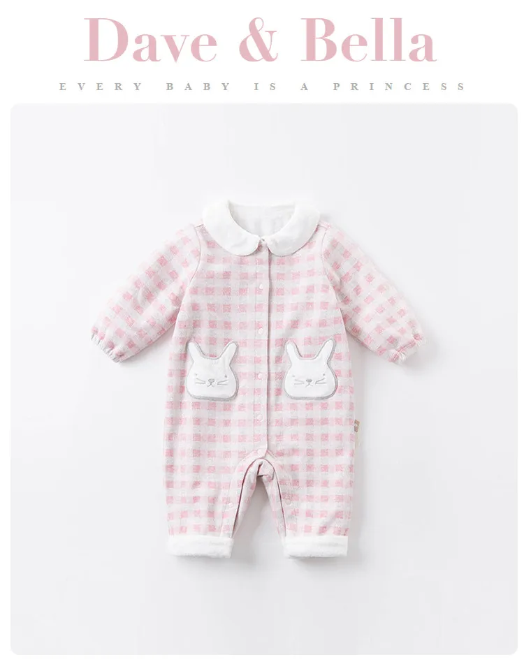 Dave bellaDBM14398; Модные зимние комбинезоны в клетку с рисунком для новорожденных девочек; Одежда для малышей; Детский комбинезон; 1 предмет