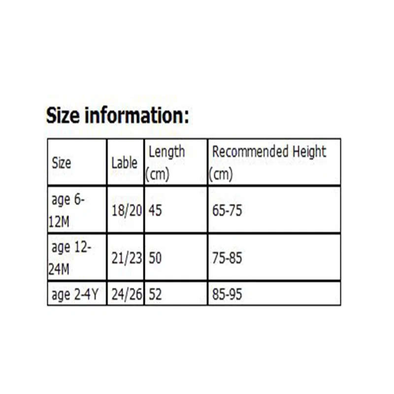 Размеры Лабле Длина (см) Рекомендуемая высота (см) Возраст 6-12 м 18/20 45 65-75 Возраст 12-24 м 21/23 50 75-85 Возраст От 2 до 4 лет 24/26 52 85-95