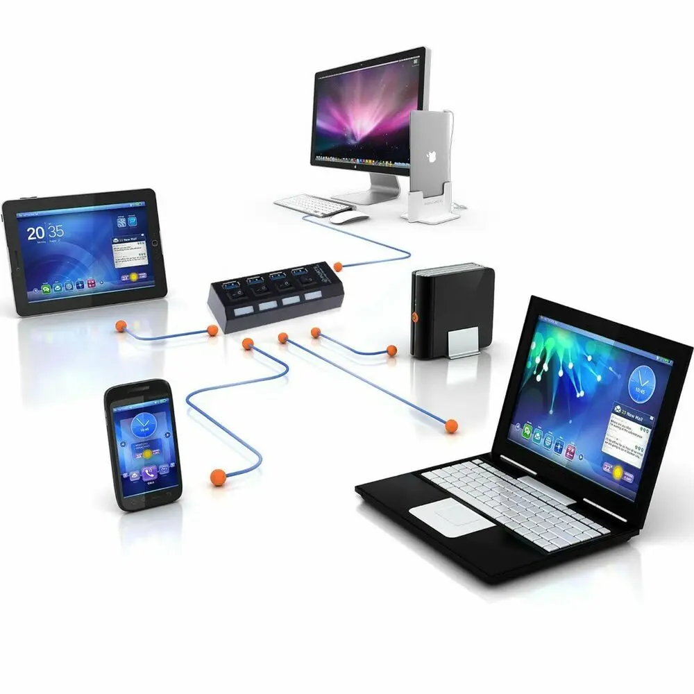 Этот адаптер с 4 USB портами для зарядки электроники с 3,0 концентратор добавляет супер высокая скорость порта к компьютеру. Благодаря тонкой текстуре и компактному внешнему виду он подходит для различных случаев.