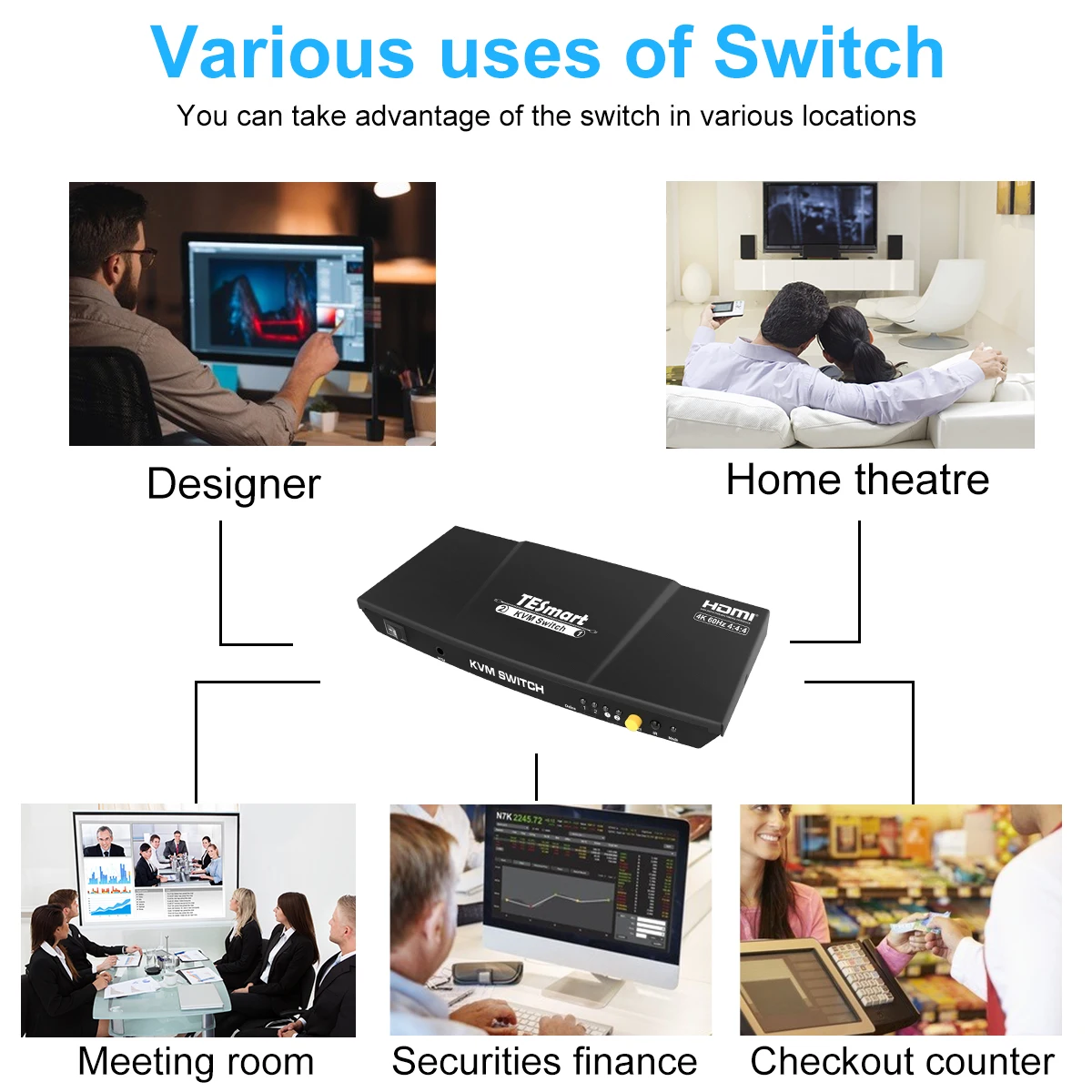 KVM-переключатели, 2 порта, 4K @ 60 Гц, новейший Ultra HD 2x1 с 2 шт. 5 футов KVM-кабелей, Sup-порт, s Клавиатура и мышь через USB