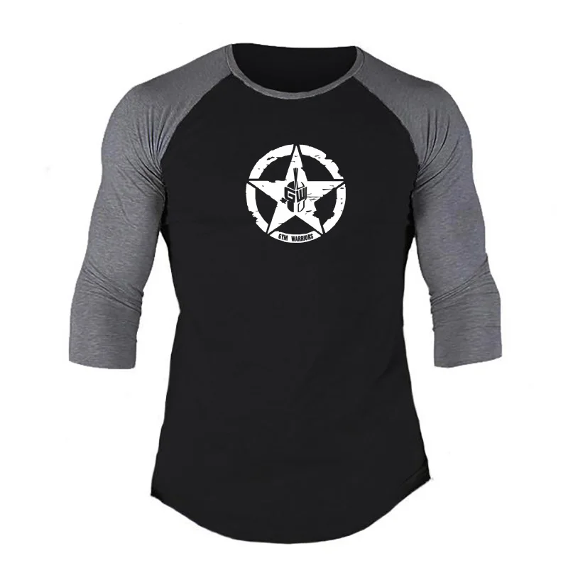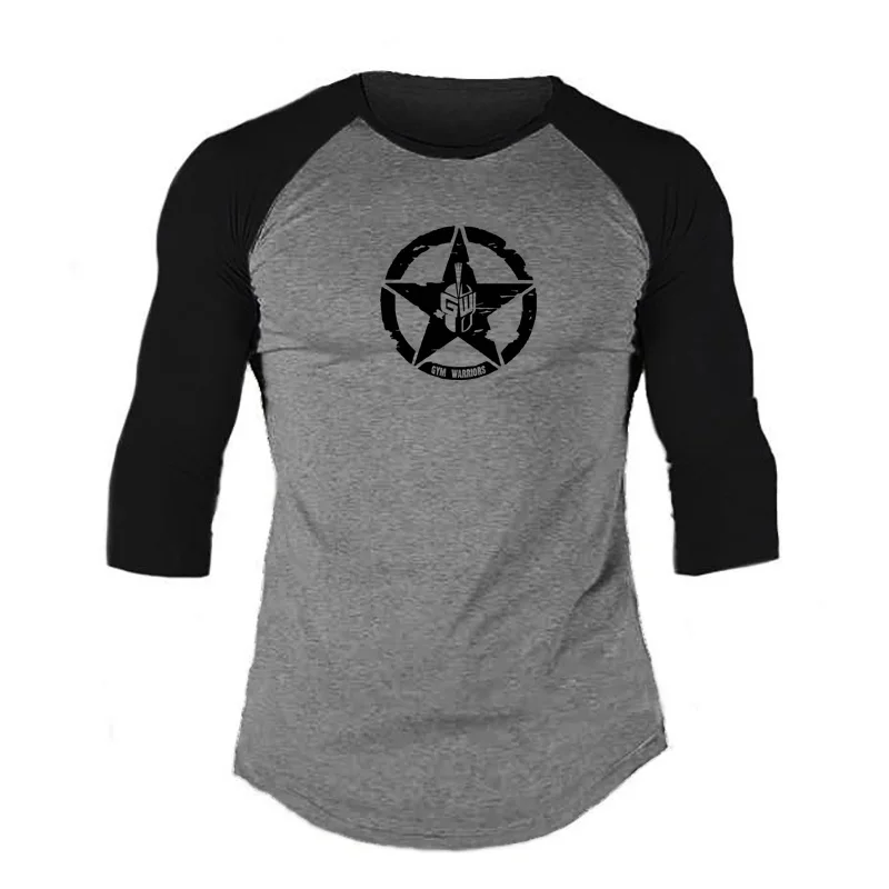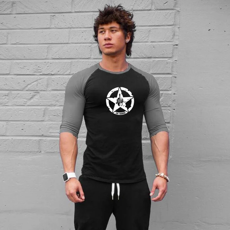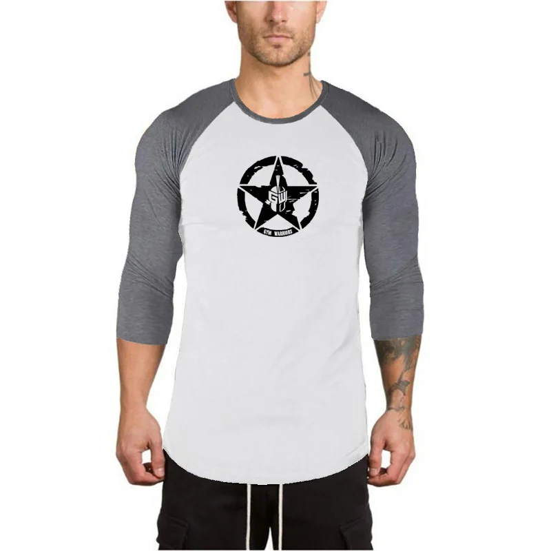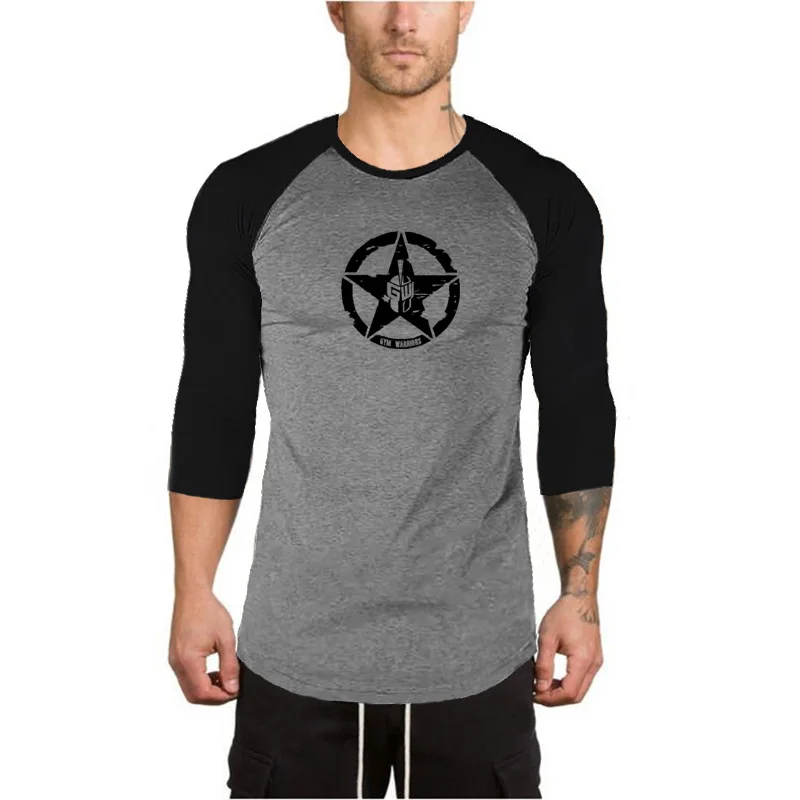 Мужская брендовая одежда, футболка с круглым вырезом и рукавом 34, одежда для тренировок, облегающая футболка для бодибилдинга и фитнеса, мужская рубашка