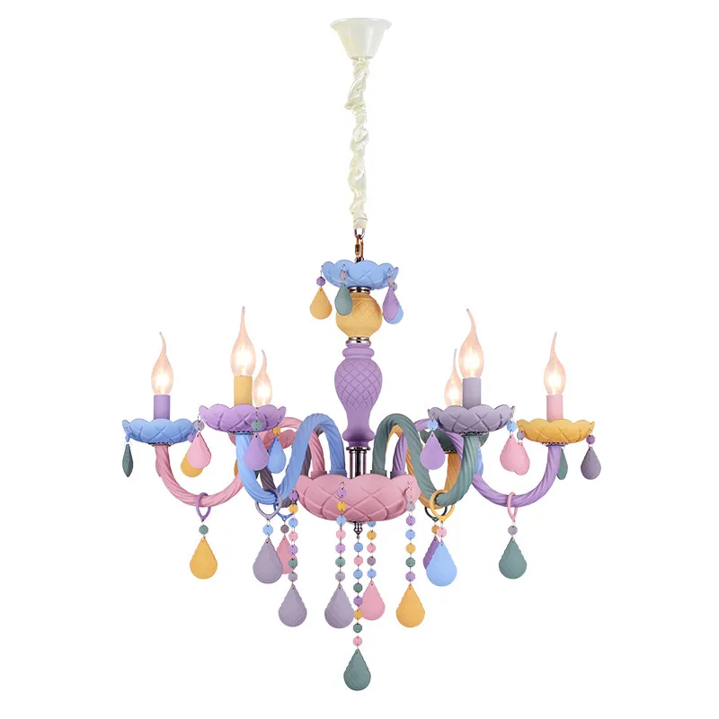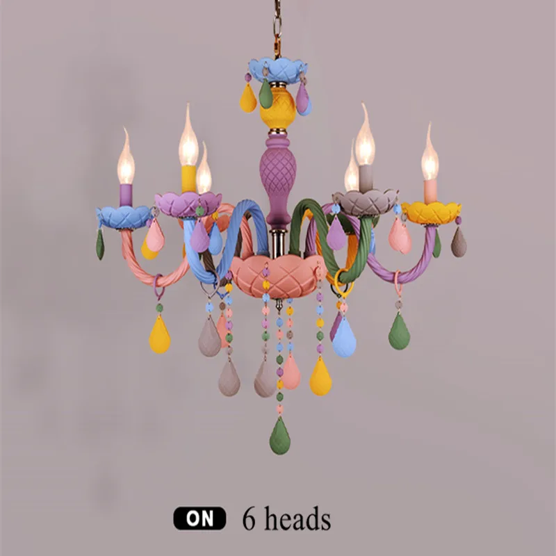 Современная креативная Хрустальная светодиодная люстра Macaron, цветной подвесной светильник, светильник, приспособление для детской комнаты, детская комната, комната для девочек